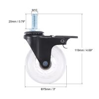 一般的に使用されるサイズ: ホイール直径: 75mm。負荷容量: 50kg/110ポンド。全体サイズ: 93x119mm(LxH); ねじサイズ: M10x20mm(Dia x L)