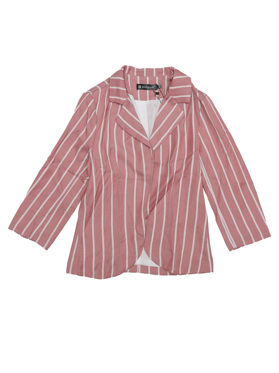 uxcell Allegra K ブレザー ストライプ柄 七分袖 前開き ショート丈 オフィスカジュアル レディース ダークピンク S