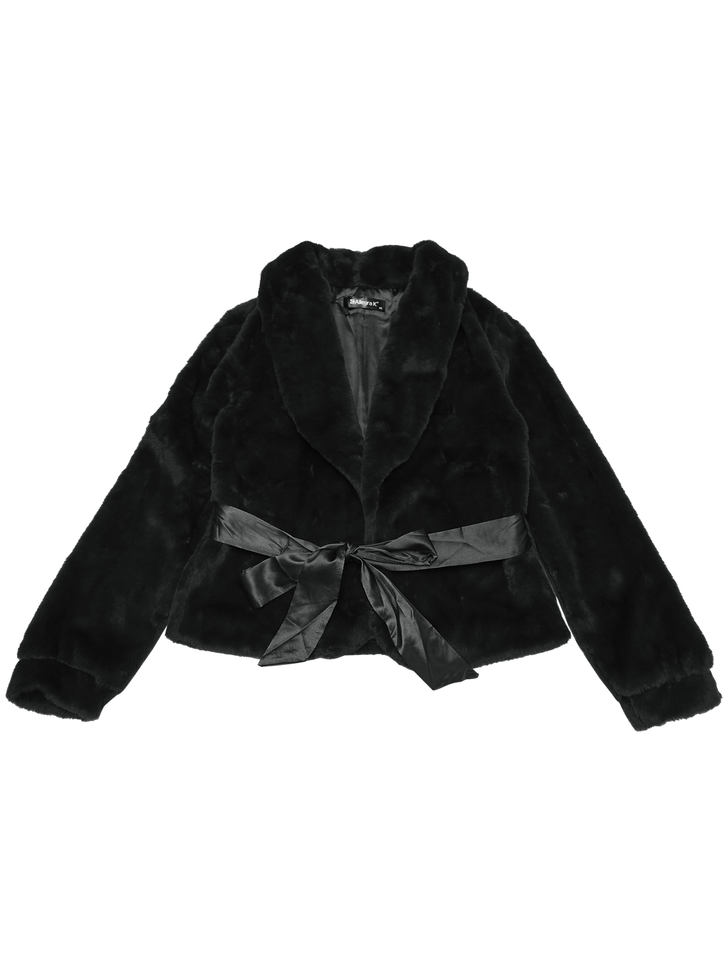 エレガント、フェイクファー、ふわふわ、ショールラペル、ネクタイウエスト