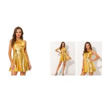 uxcell Allegra K メタリック フレアワンピース ミニドレス ノースリーブ 丸首 ハイウエスト レディース ゴールド S