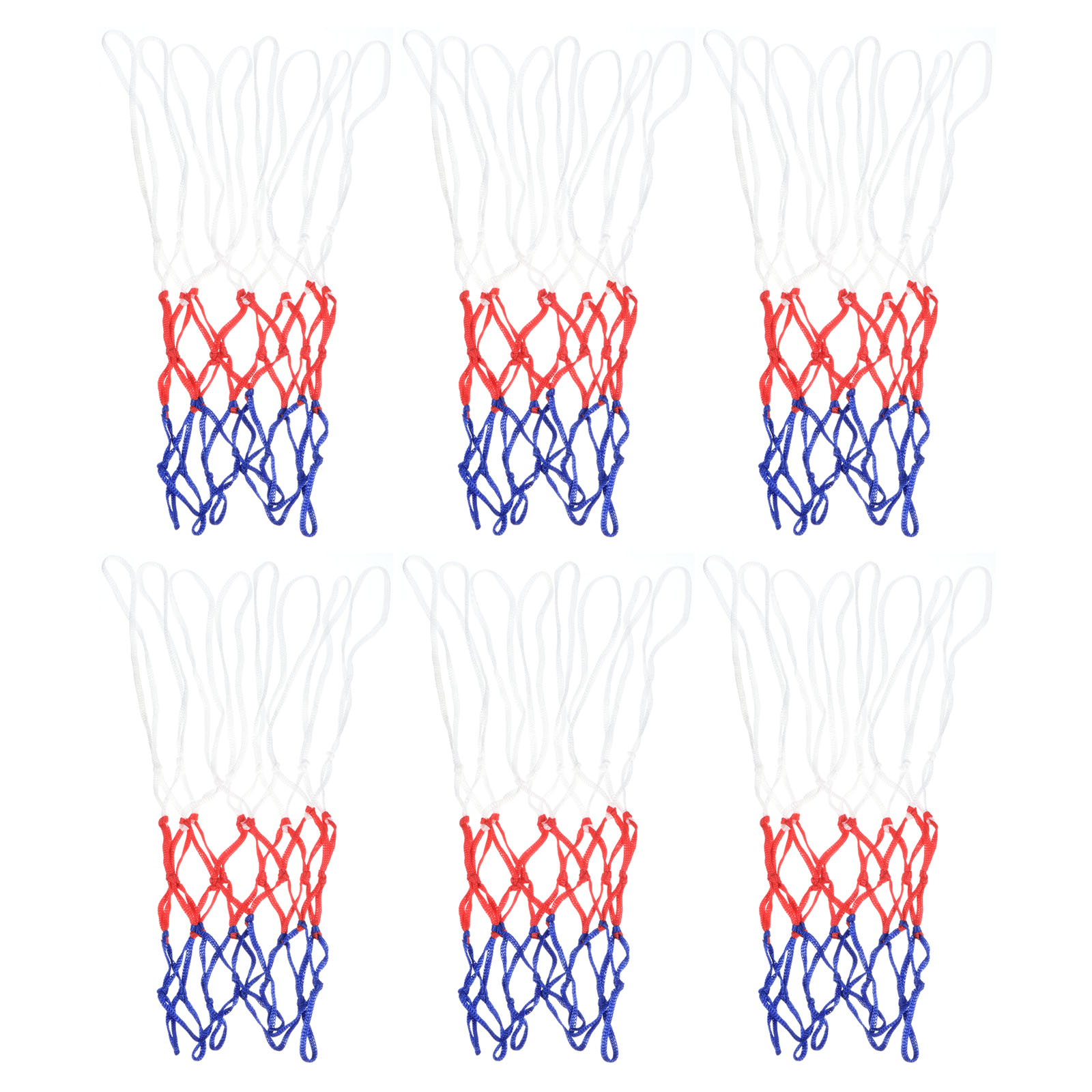 スタイル: 8ループ; カラー: ホワイト レッド ブルー; 全体のサイズ: 43 x 30 cm(L*直径); ロープ径: 5.5 mm; パッキングリスト: 6個 x ミニバスケットボールネット
