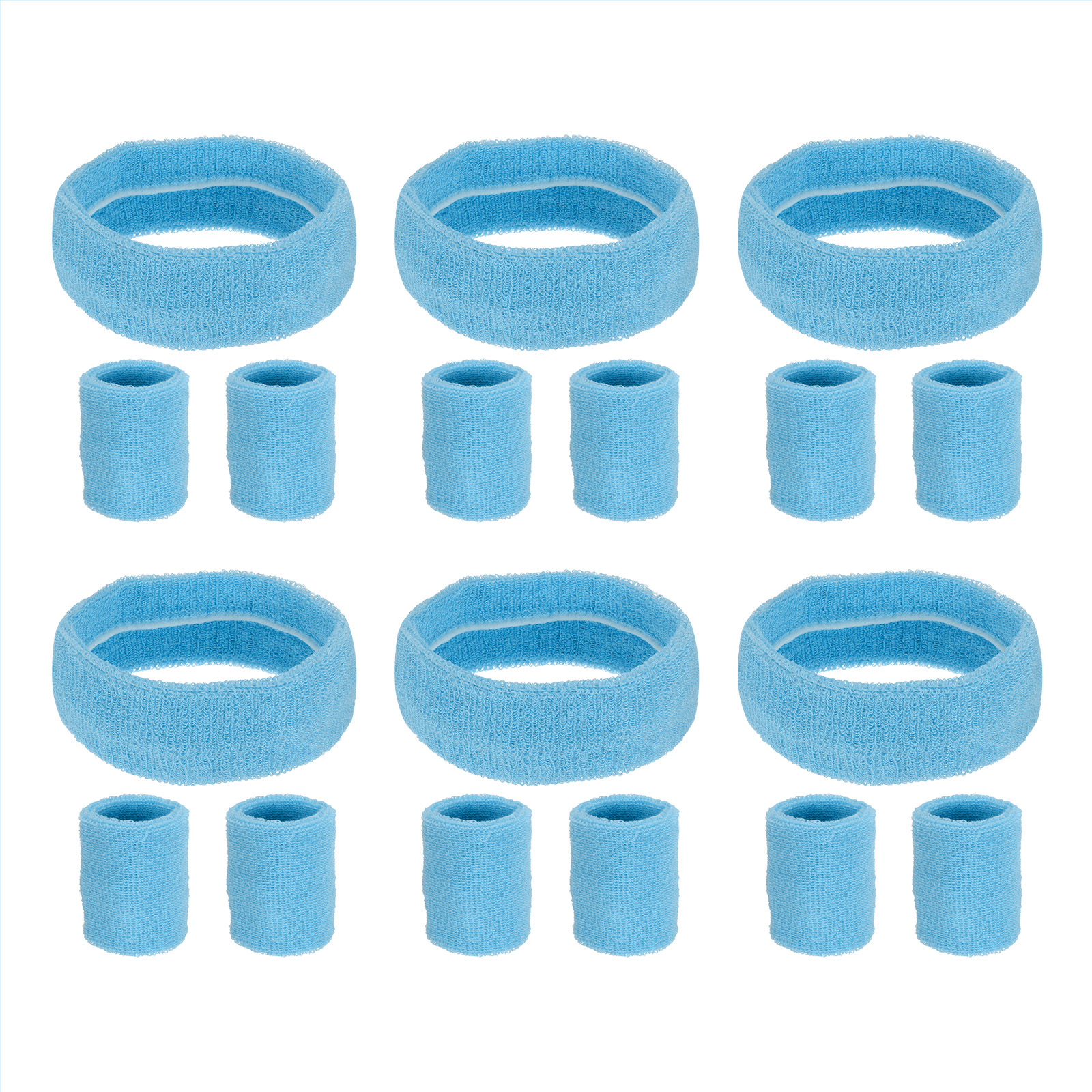 カラー:スカイブルー;素材:綿;スウェットバンドサイズ:8 x 8 cm / 3.15 x 3.15 "(縦×横);ヘッドバンドサイズ:20 x 5 cm / 7.87 x 1.97 "(縦×横);パッキングリスト:6セット(1セットにスウェットバンド2個、ヘッドバンド1個)