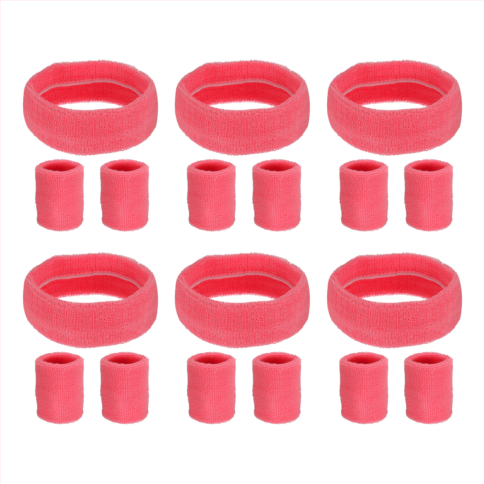カラー:ローズレッド;素材:コッ トン;スウェットバンドサイズ:8 x 8 cm / 3.15 x 3.15 "(縦×横);ヘッドバンドサイズ:20 x 5 cm / 7.87 x 1.97 "(縦×横);パッキングリスト:6セット(1セットにスウェットバンド2個、ヘッドバンド1個)