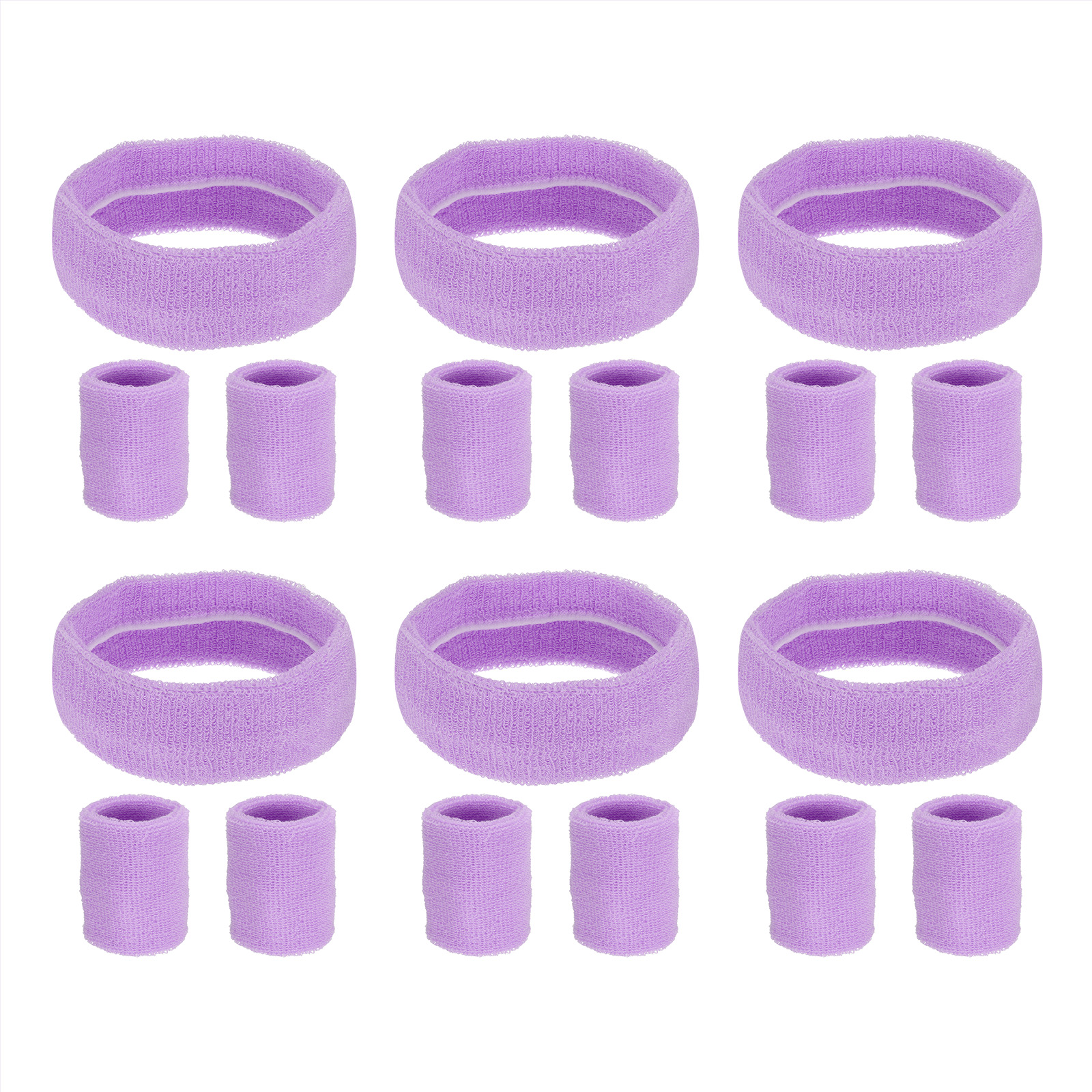 カラー: レッド ライトパープル; 素材: 綿; スウェットバンド サイズ: 8 x 8 cm / 3.15 x 3.15 " (縦×横); ヘッドバンド サイズ: 20 x 5 cm / 7.87 x 1.97 " (縦×横); パッキングリスト: 6セット (スウェットバンド2個とヘッドバンド1個のセット)