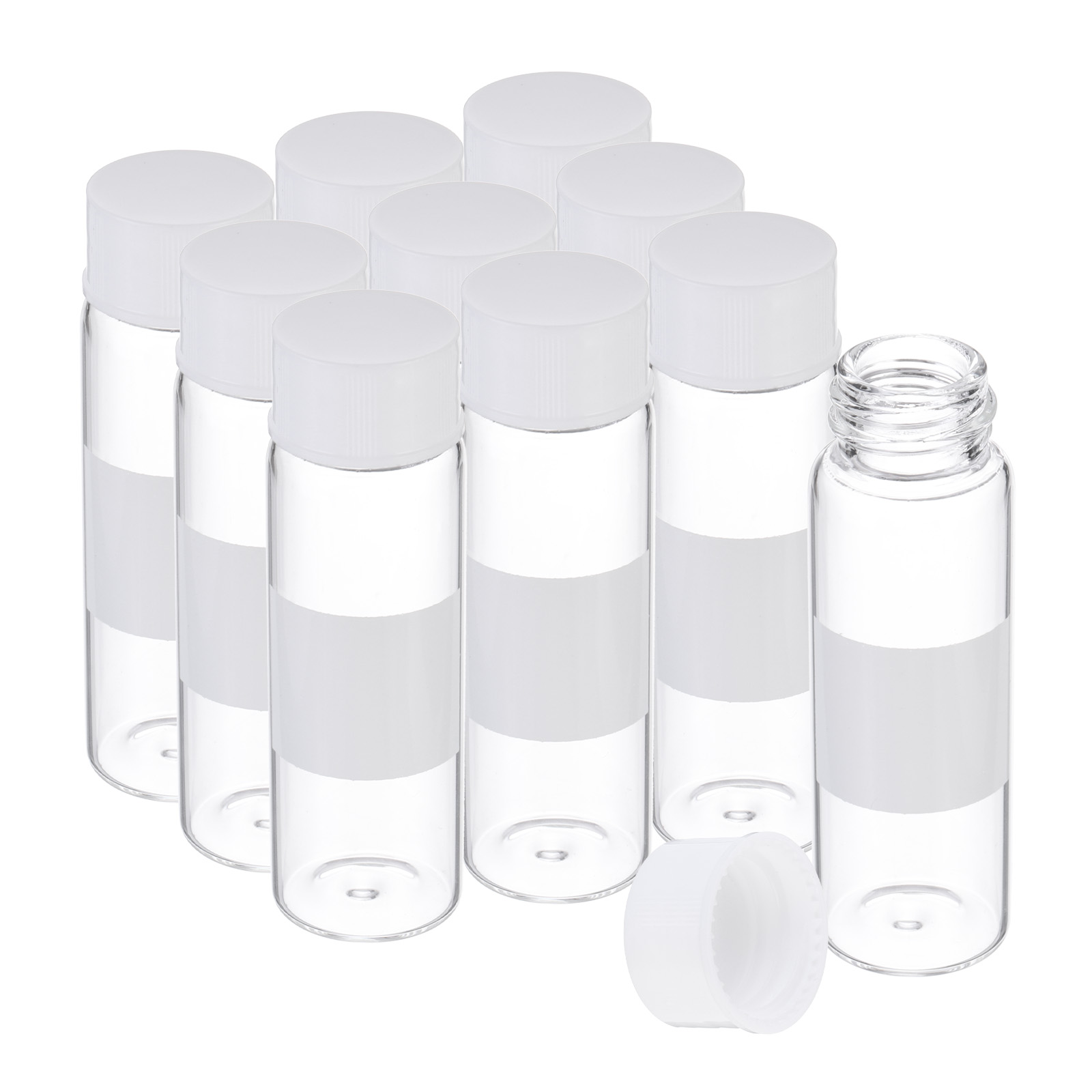 PATIKIL 10個の15mlの小さなクリアガラスビアル 白いねじキャップ付き ホウケイ酸ガラスサンプルボトル 固体液体粉末の保管用ラベル付き