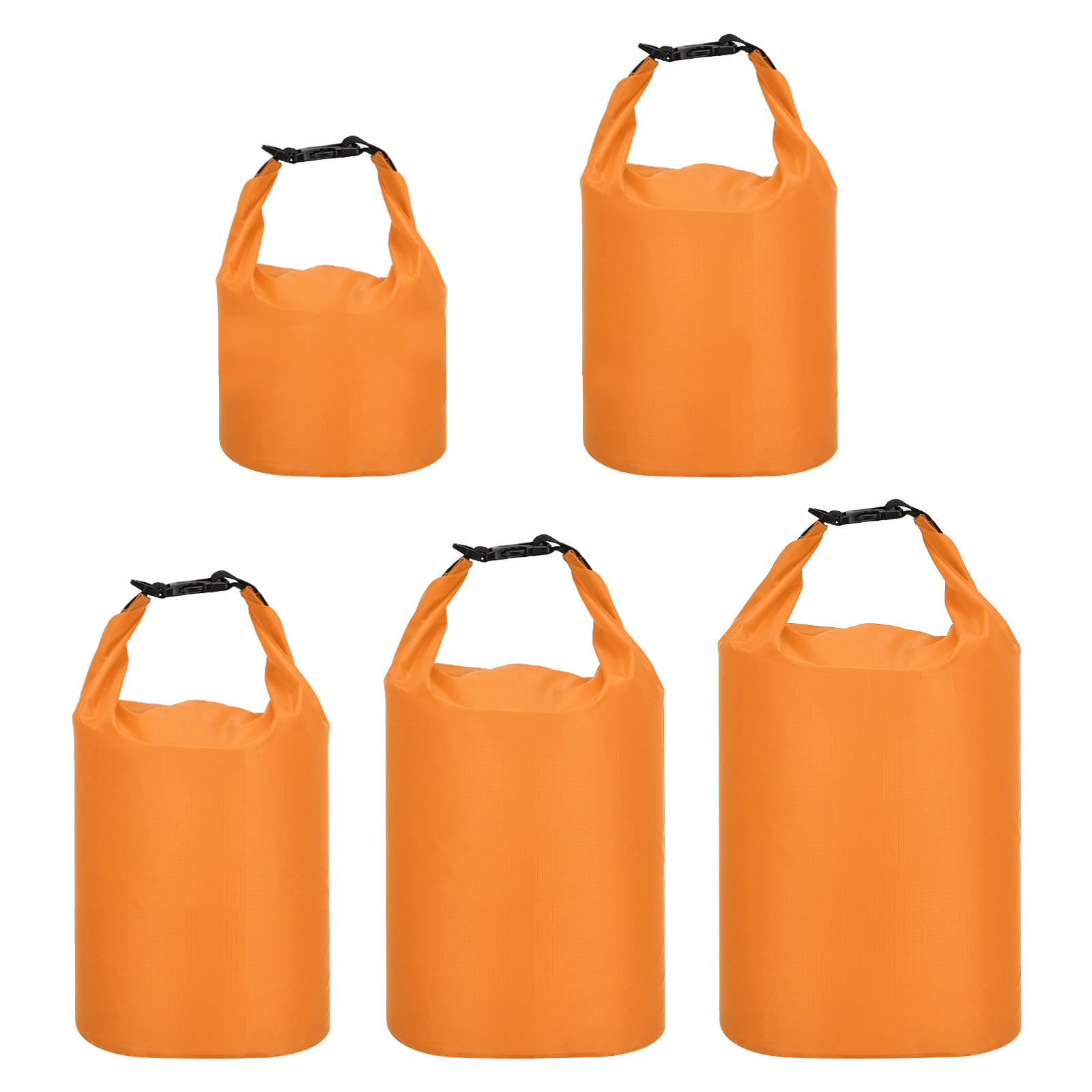 お手入れも使用も簡単:持ち物を広々としたドライバッグの中に入れて、上部の織りテープを引っ張り、3〜5回しっかりと巻き、バックルで固定して完全に密閉します。1.5L、2.5L、3.5L、4.5L、6Lの5つの容量サイズがあり、さまざまなニーズに対応できます。