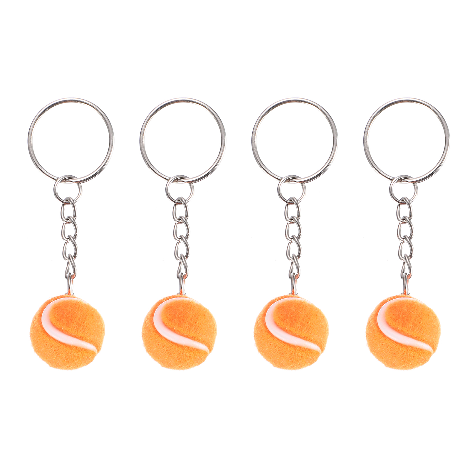 PATIKIL テニスキーチェーン 4個のミニテニスボールキーチェーンキーリング スポーツ愛好家向けのかわいいスポーツキーリング オレンジ