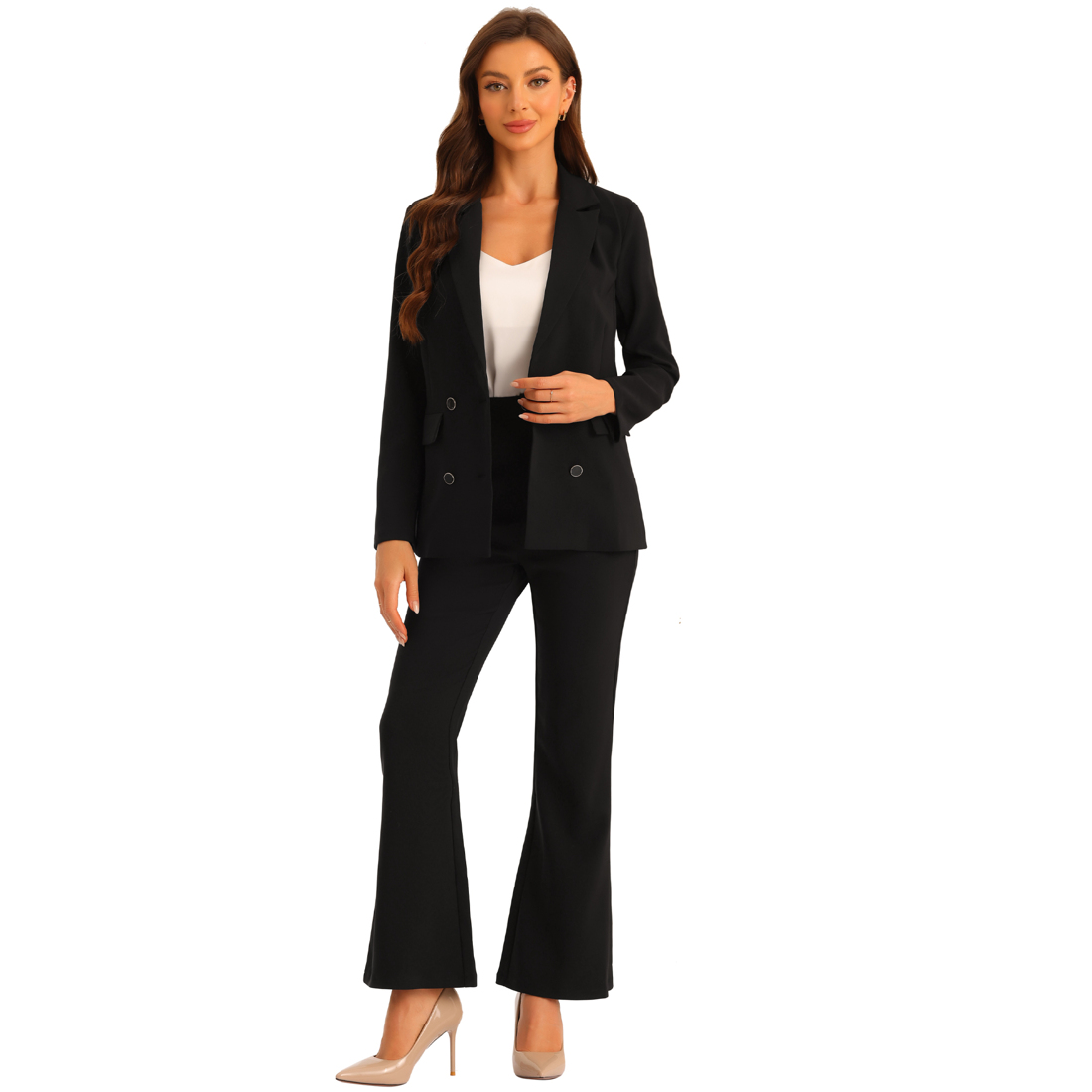 Allegra K スーツ 上下セット ブレザー ロングパンツ ビジネス 通勤 オフィス ノッチドラペル 2点セット レディース