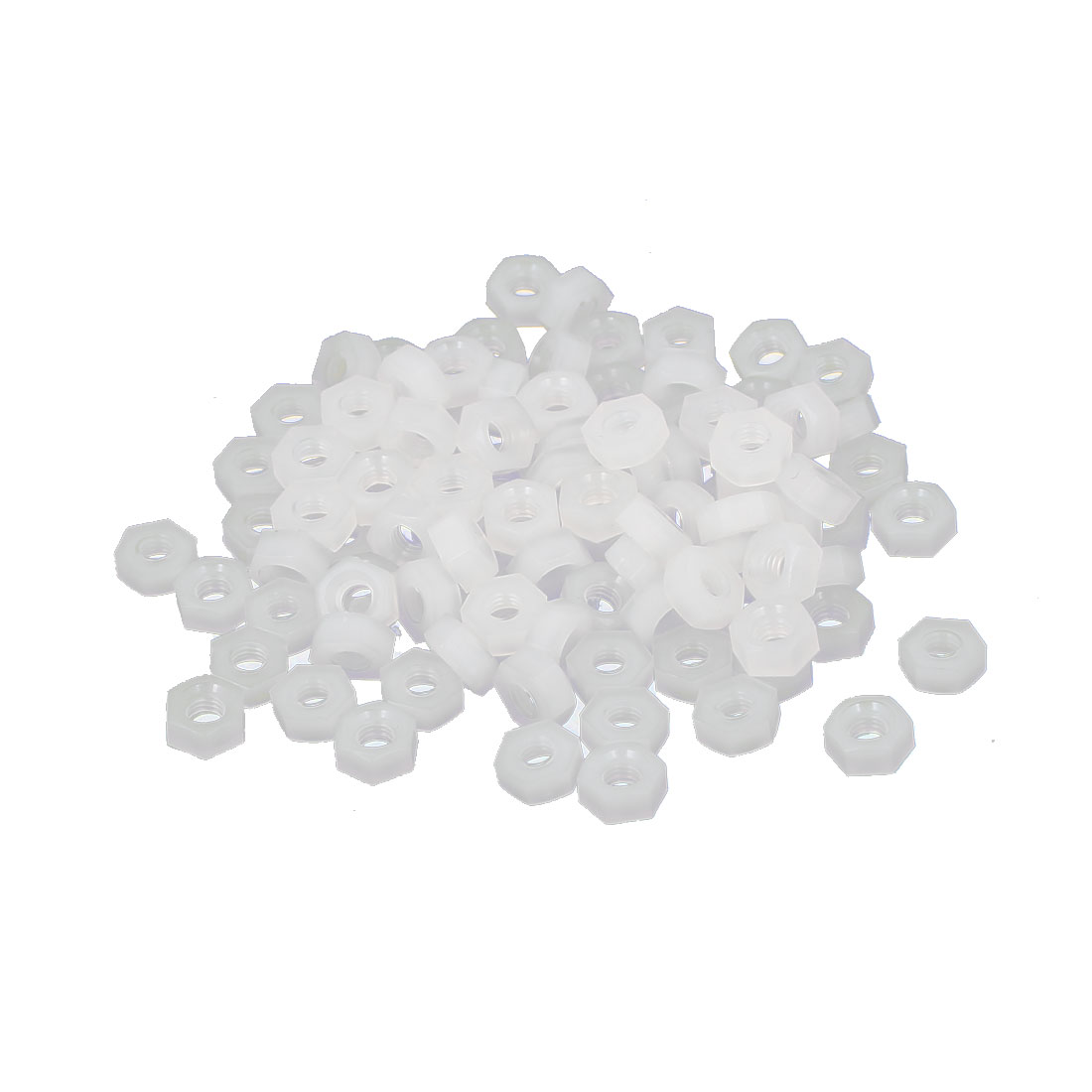 uxcell 六角ナット オフホワイト ナイロン材質 高さ2mm 六角幅4mm 六角ナットファスナー 100個入り