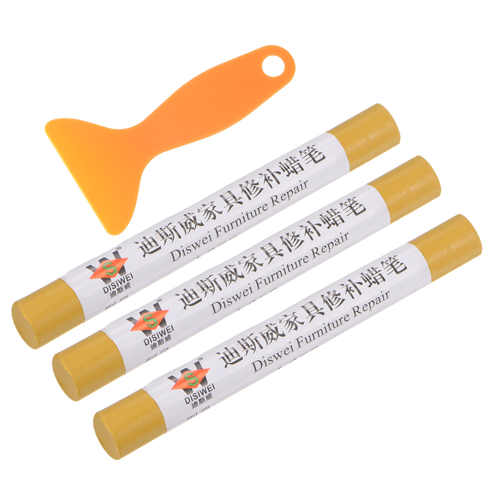 uxcell 家具修理キット 木製 ワックスウッドフィラースティック ヘラ付き クレヨンマーカー家具タッチアップキット 3本 ヘビーブラウンイエロー