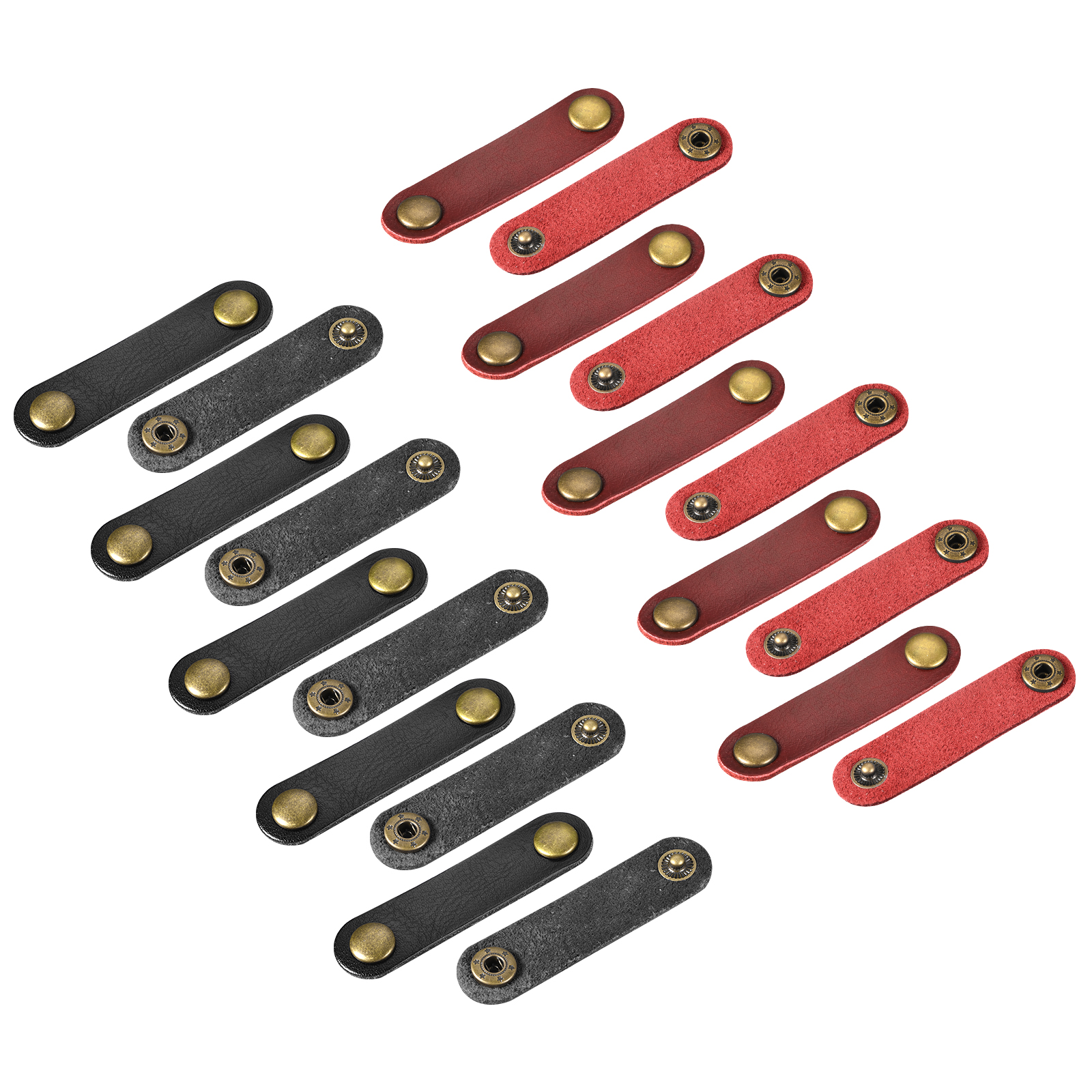 uxcell レザーケーブルストラップ コードオーガナイザー ケーブルタイ ポータブル ケーブル管理 USBケーブル ブラック ワインレッド 20個