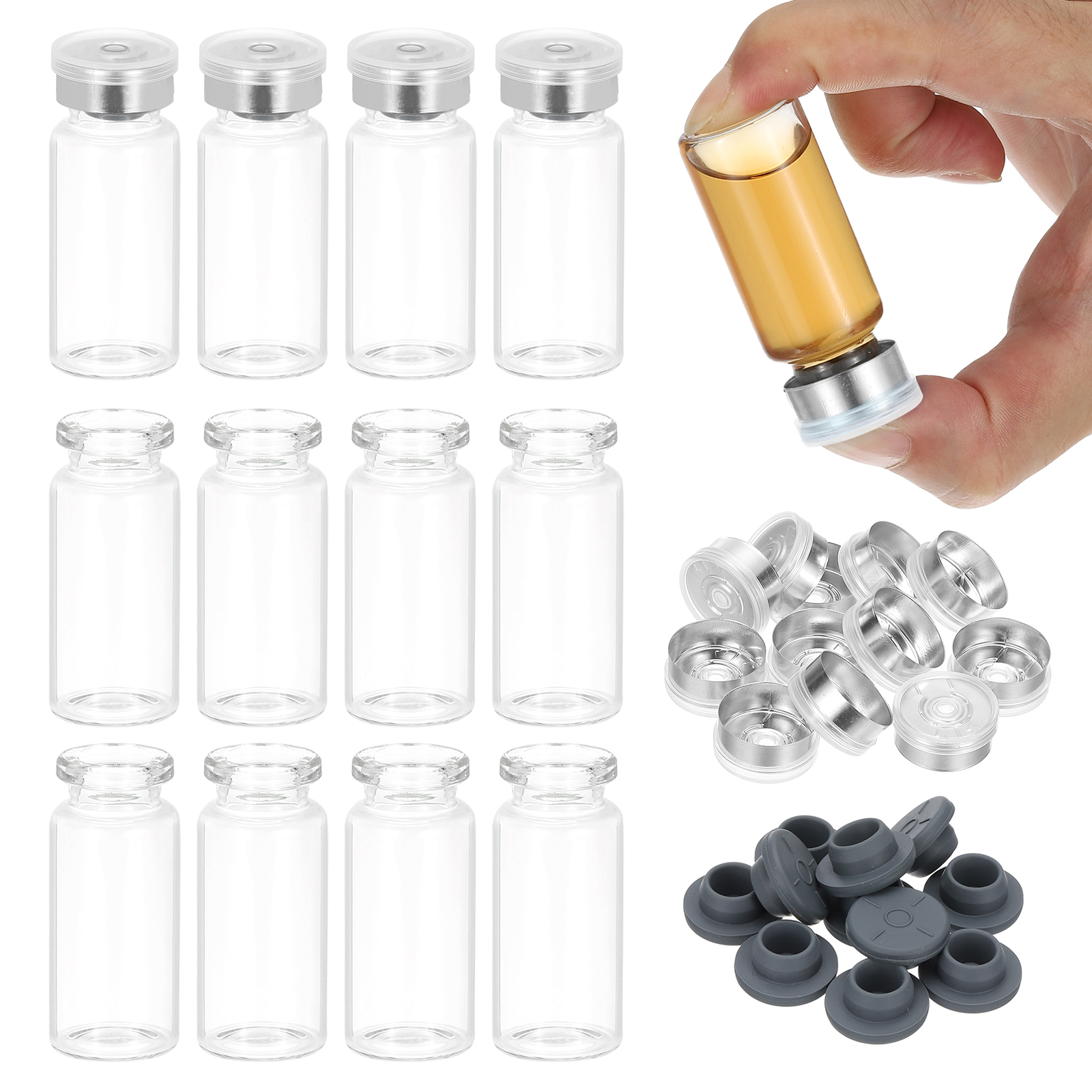 PATIKIL 12個 10ml クリアボロシリケートガラスサンプルビアル アルミプラスチックキャップ ゴムストッパー付き かなめっき