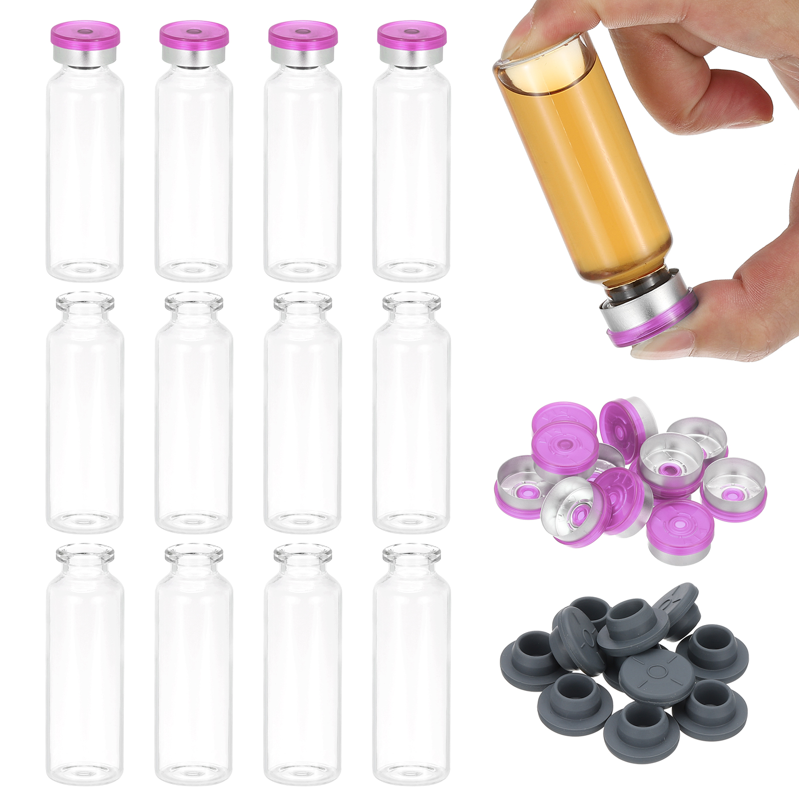 PATIKIL アルミプラスチックキャップ ゴムストッパー付きのクリアホウケイ酸ガラス製サンプルビアル20ml 12個セット パープルシルバートーン