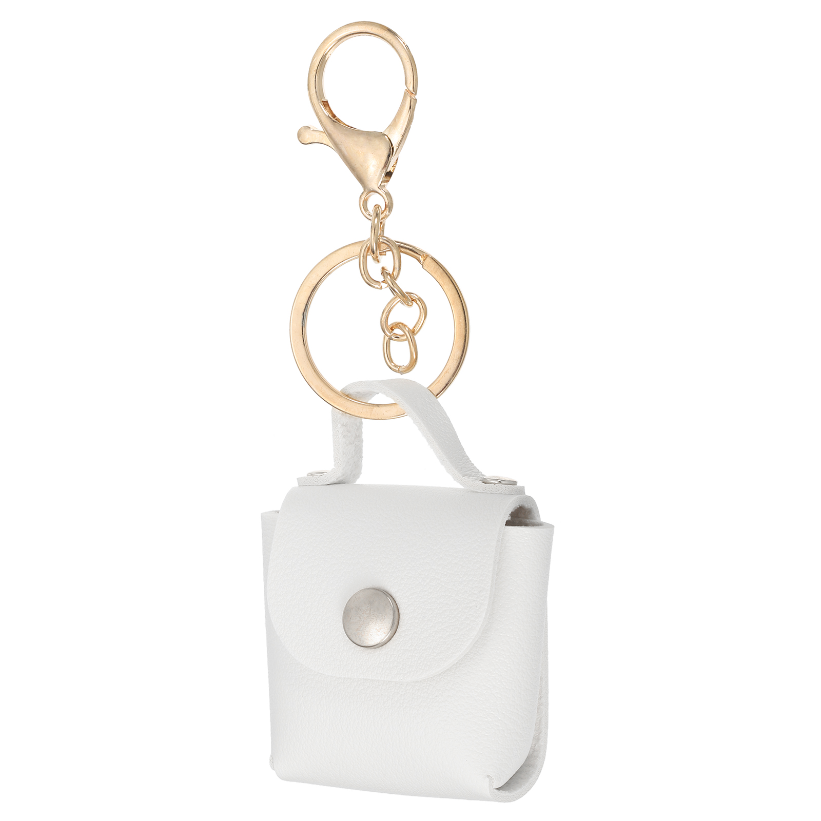 PATIKIL コインポーチ PUレザー製小さなコインパースキーチェーン キーチェーンポーチミニトートバッグキーチェーン ホワイト