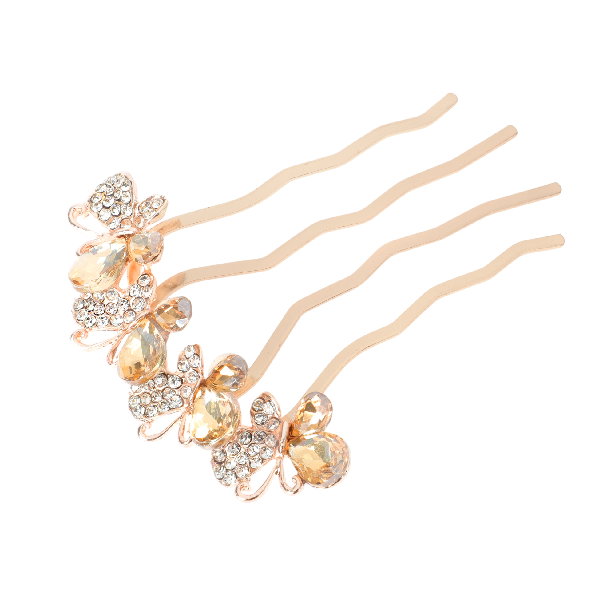 精巧なデザイン: このラインストーンコームの蝶のデザインは、洗練されたはなやかさを漂わせます。デザイン内に埋め込まれたきらめく水滴が美しく光を反射し、ヘアスタイルに輝きを添えます