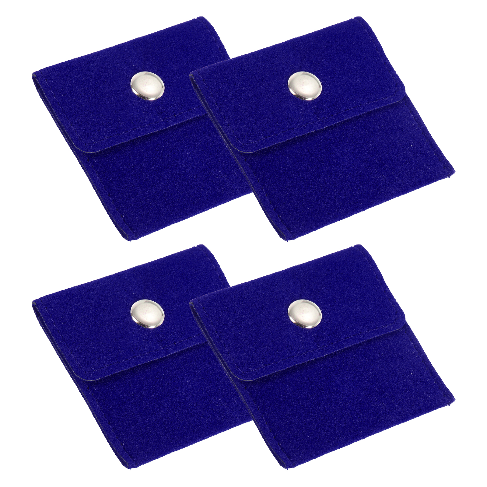 PATIKIL 3x3インチ宝石ポーチ 4個セット ベルベットポーチスナップボタン付きポータブル収納バッグ イヤリング ブレスレット ブルー