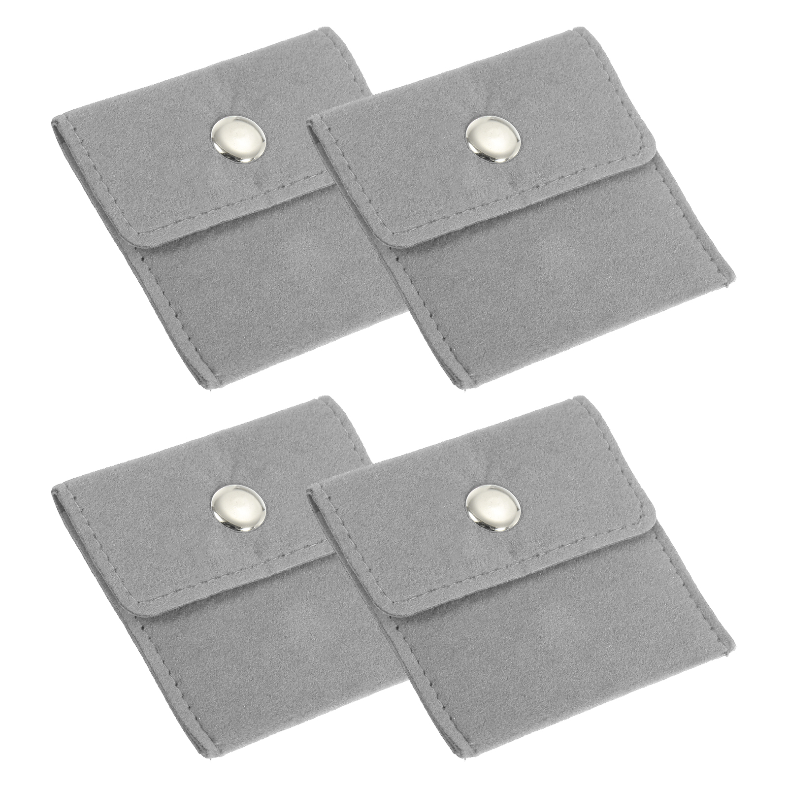 PATIKIL 3x3インチ宝石ポーチ 4個入りベルベットポーチスナップボタン付きポータブル収納バッグ イヤリング ブレスレット グレー