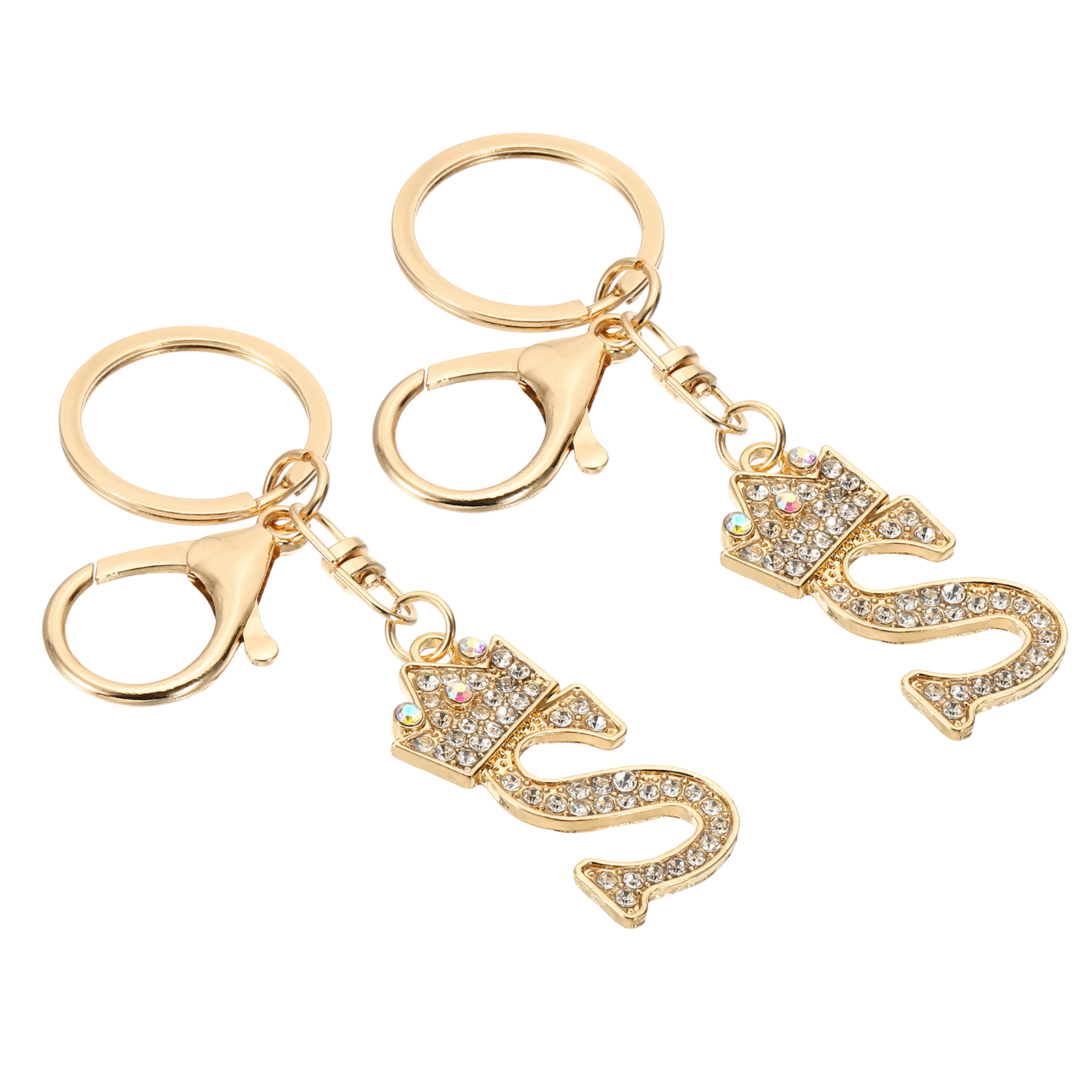 PATIKIL イニシャルレターキーチェーン 2個 レターSクラウンデザインチャーム 水晶ダイヤモンドで飾られた 金色