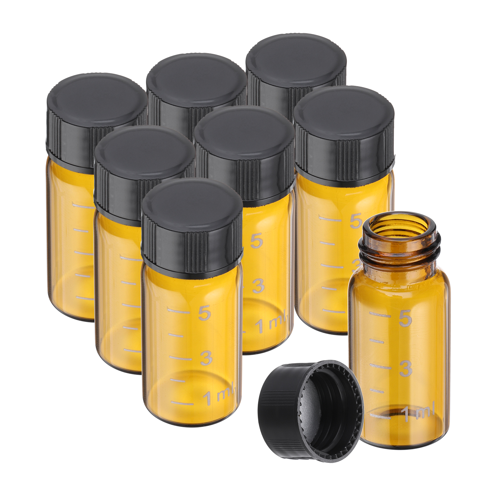 PATIKIL 黒いねじキャップ付きの5mlの小さな茶色ガラスびん8個 ホウケイ酸ガラス製の目盛り付きサンプルボトル 固体液体粉末の保管用