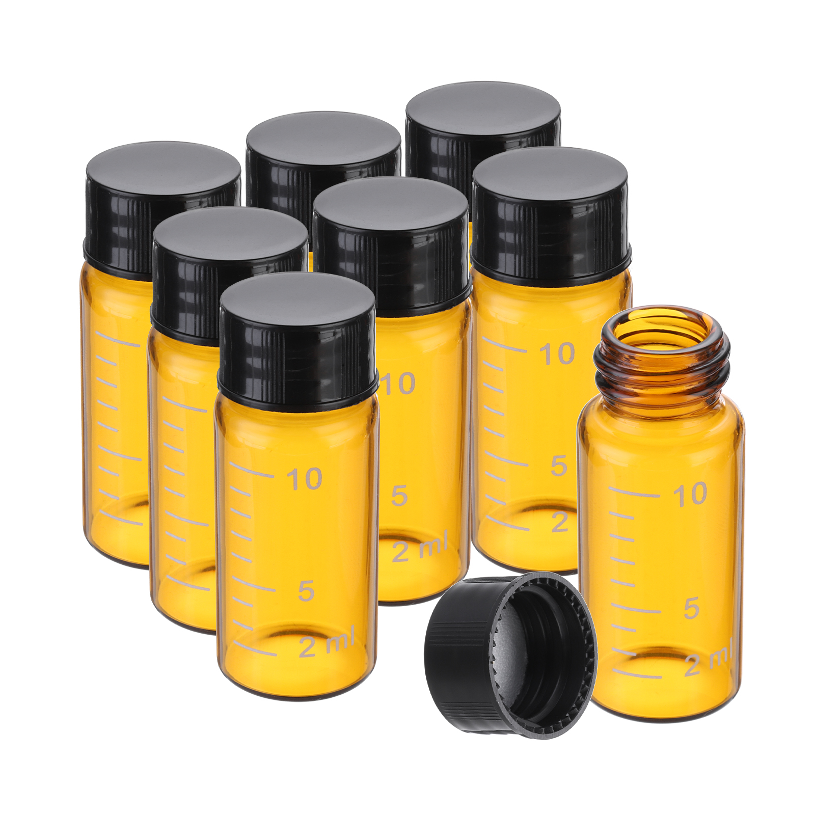 PATIKIL 黒いねじキャップ付きの10mlの小さな茶色ガラスびん8個 ホウケイ酸ガラス製の目盛り付きサンプルボトル 固体液体粉末の保管用