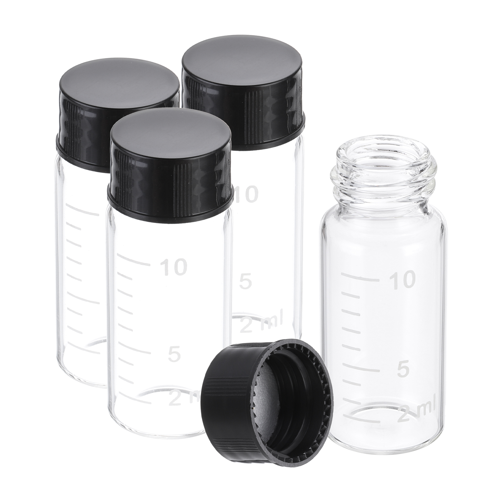 PATIKIL 黒いねじキャップ付きの10mlの小さなクリアガラスびん4個 ホウケイ酸ガラス製のグラデーション入りサンプルボトル 固体液体粉末の保管用