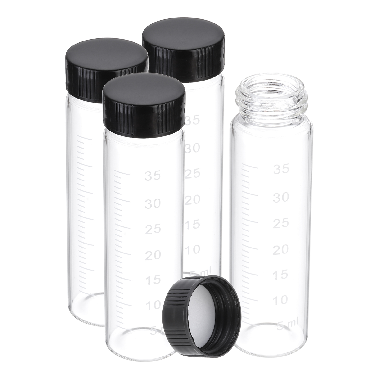PATIKIL 黒いねじキャップ付きの40mlの小さなクリアガラスビアル4個 ホウケイ酸ガラス製の分度器付きサンプルボトル 固体液体粉末の保管用