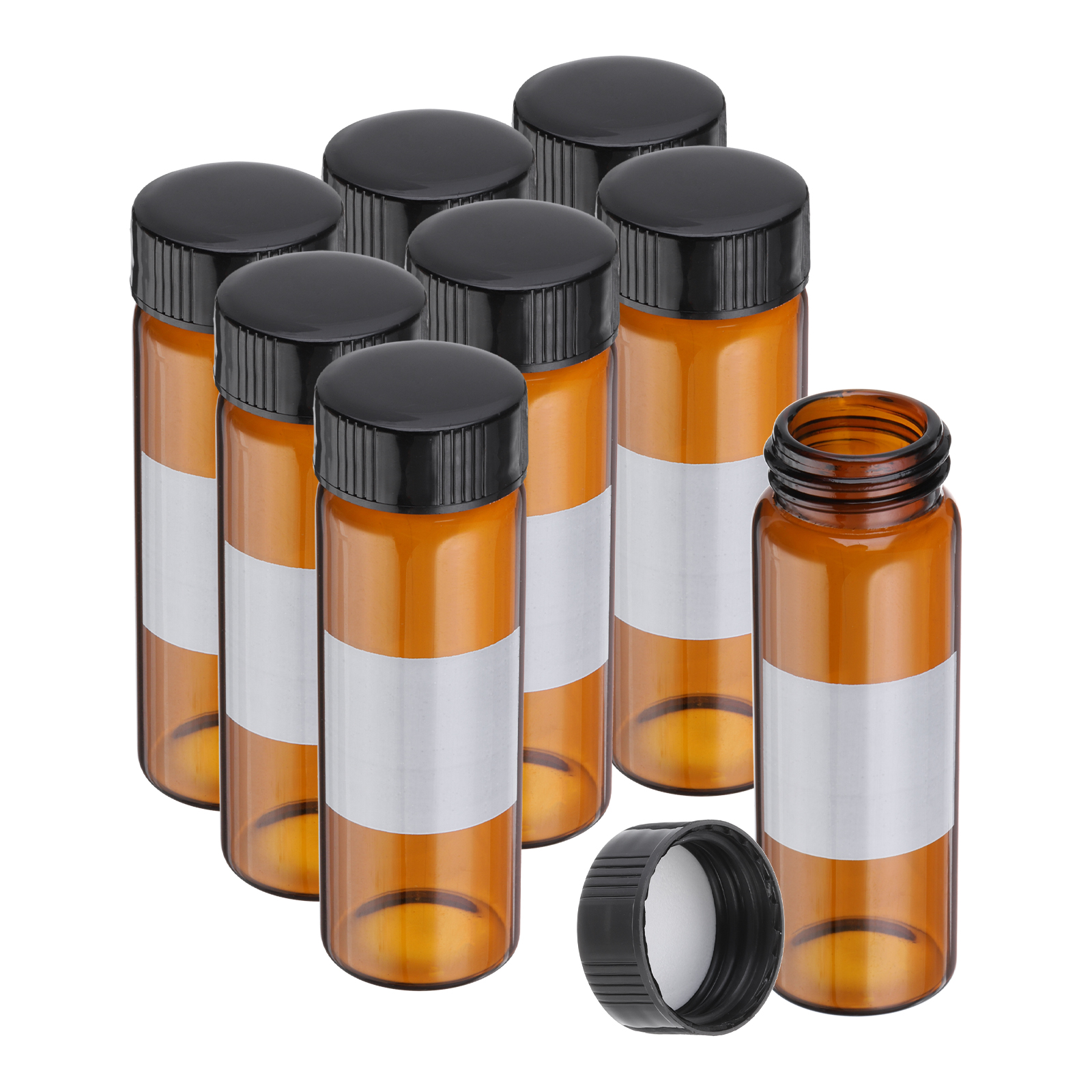 PATIKIL 黒いねじキャップ付きの30mlの小さな茶色ガラスびん8個 ボロシリケートガラスサンプルボトル 固体液体粉末の保管用にラベル付き