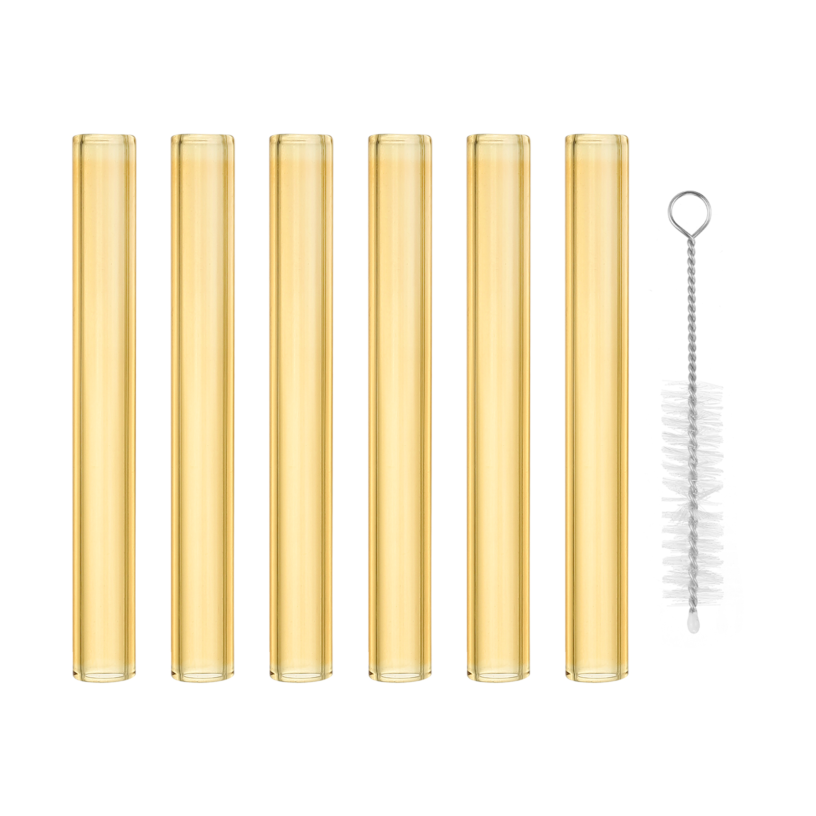 仕様:材質:ガラス、カラー:イェロー、サイズ:高さ:10 cm、直径:12mm、パッケージリスト:6個 x ホウケイ酸ガラス管、1個 x クリーニング筆