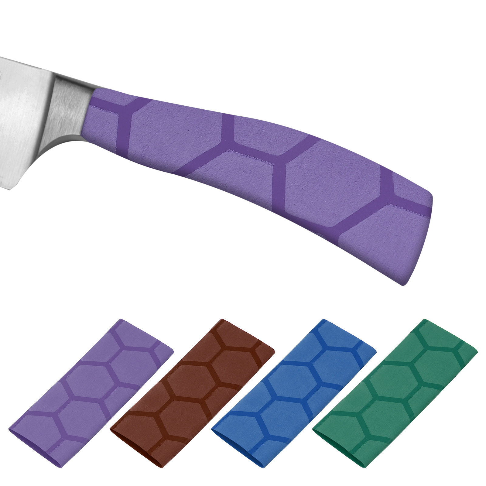 PATIKIL カッティングナイフハンドル 熱収縮スリーブ 1.2x4.9インチ シェフカッター 4パック パープル/茶色/ブルー/緑 ハイブパターン
