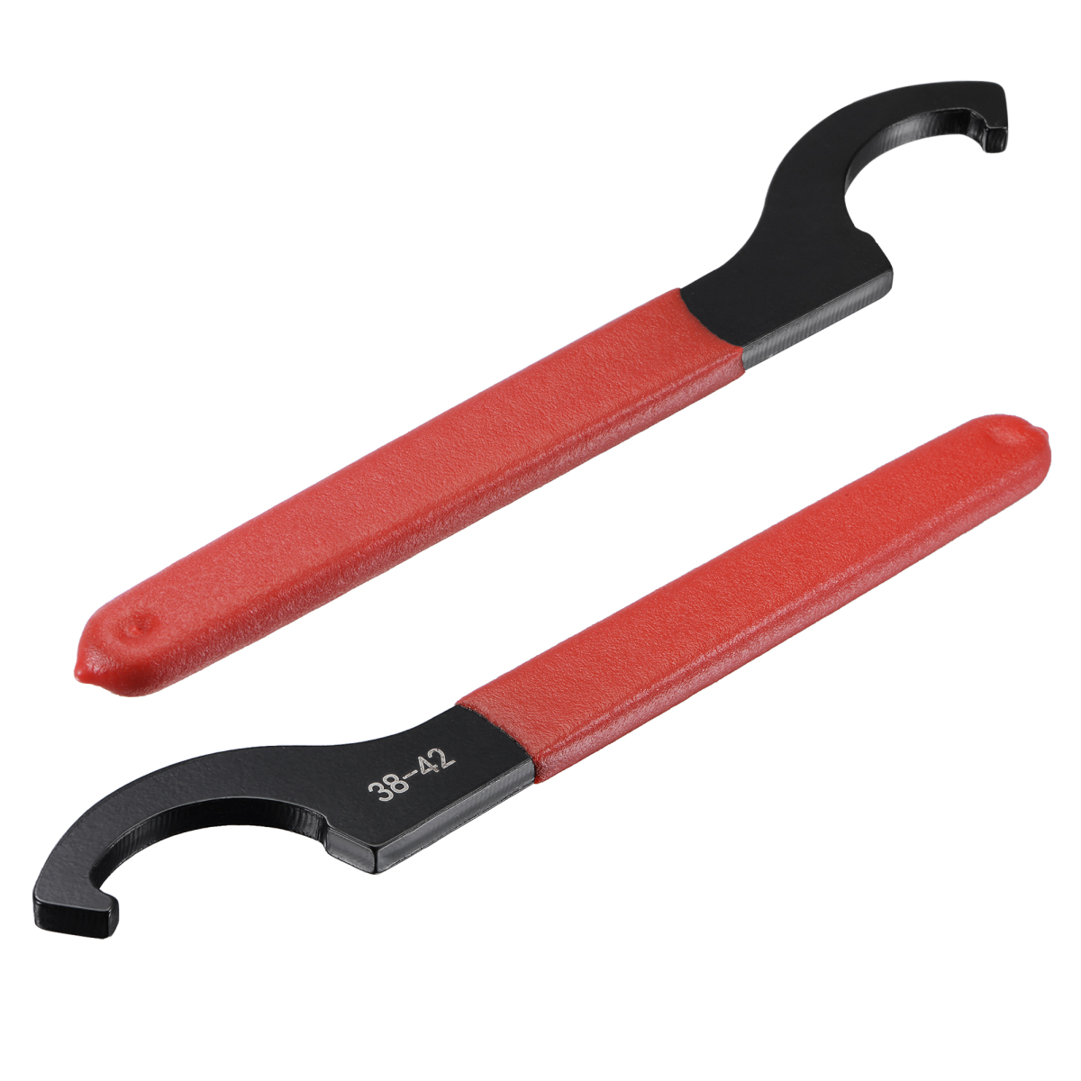 uxcell フックレンチスパナ コレットチャック 38-42mmラウンドナット用 レッドの滑り止めハンドル付き ドロップ鍛造炭素鋼 2個入り