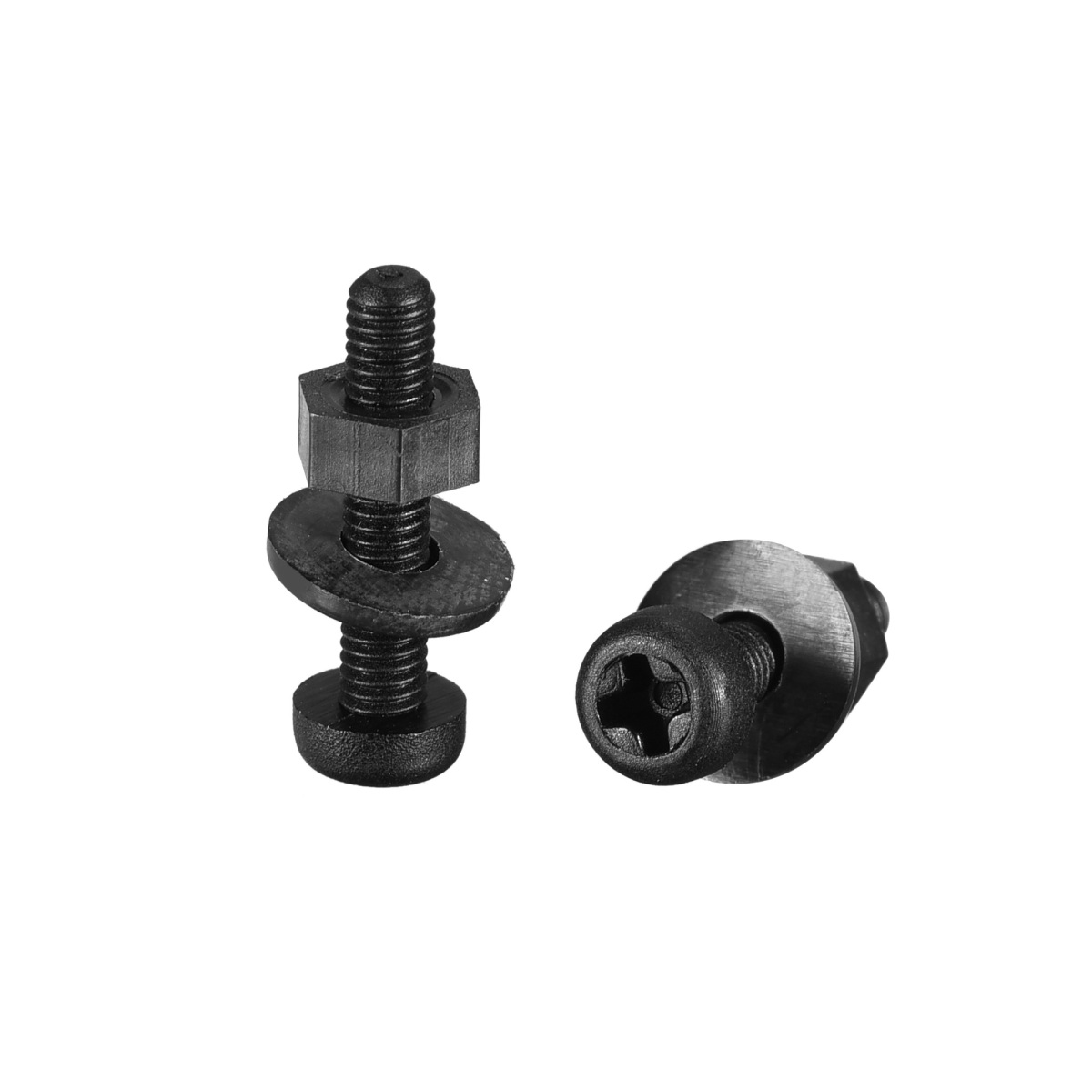 スクリューナット洗濯機キット:20セットメトリックM3X15mmブラックナイロンプラス丸型ヘッドスクリュー六角ナットフラットワッシャ品揃えキット