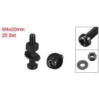 スクリューナット洗濯機キット:20セットメトリックM4X20MMブラックナイロンプリフィンラウンドヘッドスクリュー六角ナットフラットワッシャ品揃えキット
