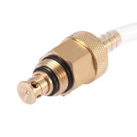 使いやすく便利なツールをオイルフィルターハウジングのドレンバルブにねじ込み、刻み付きナットを少し締めてオイルを滴下します。