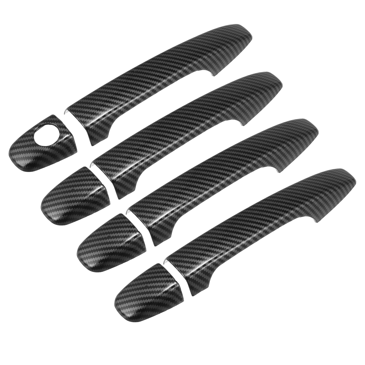 X AUTOHAUX 車ドアハンドルカバートリム 炭素繊維パターン キーホール付き ドアハンドルプロテクタートリム 外装装飾 キーレスホールなし 8個