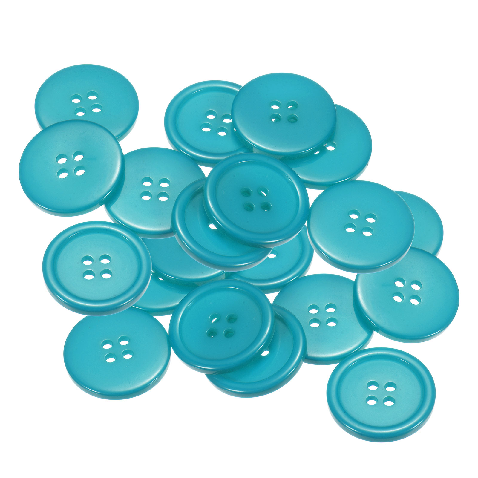 uxcell 20個40Lボタン1インチ(25mm)樹脂丸フラット4穴クラフト交換ボタン 裁縫服とDIY用 レイクブルー