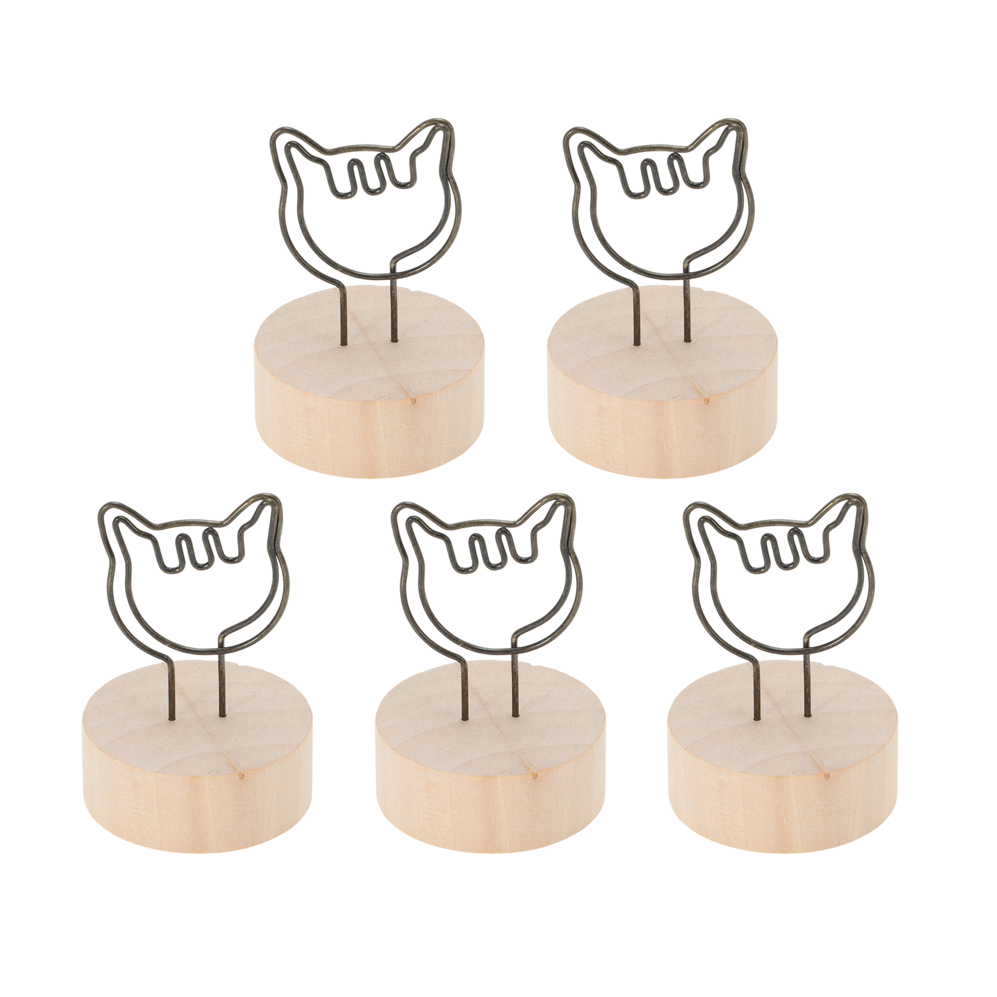 CAPASTEC メモクリップ メモホルダー メモスタンド 可愛い 木製 写真立て カード 名刺 便箋 オフィス 机上用品 文房具用 5個セット 猫