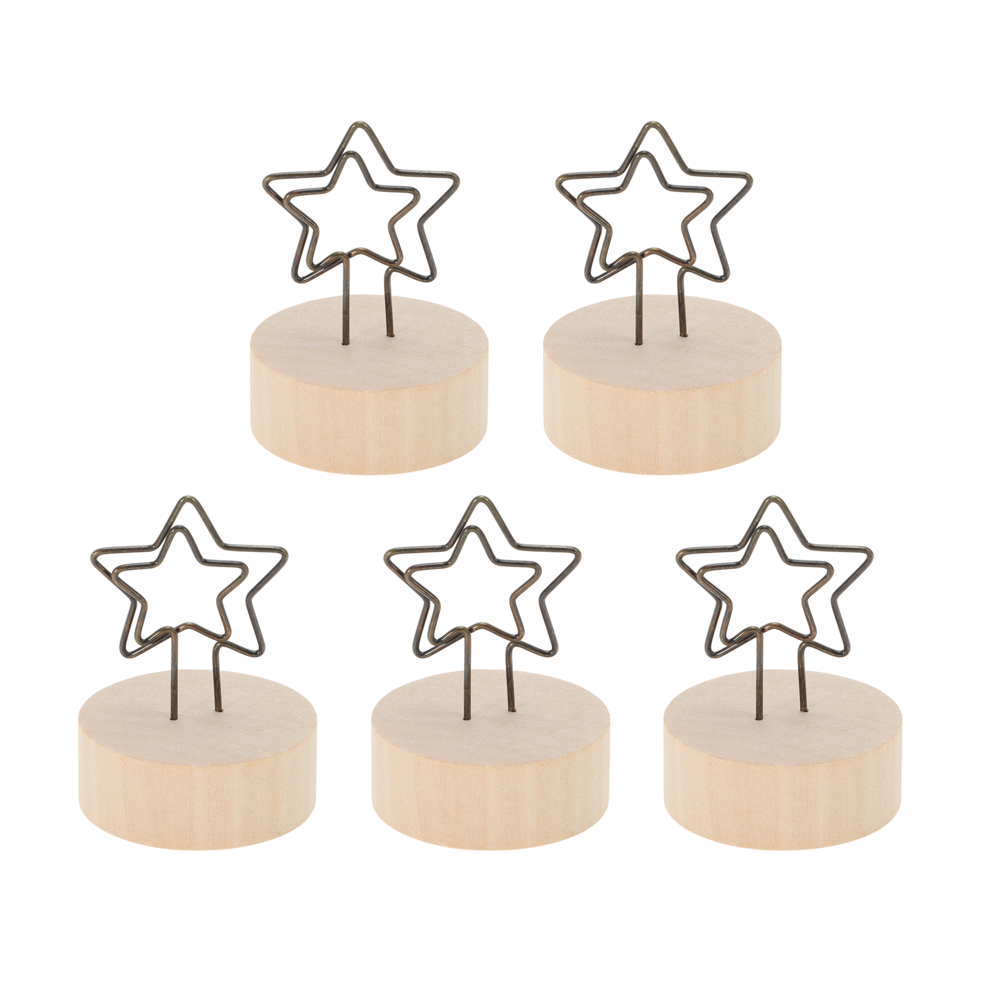 CAPASTEC メモクリップ メモホルダー メモスタンド 可愛い 木製 写真立て カード 名刺 便箋 オフィス 机上用品 文房具用 5個セット 星