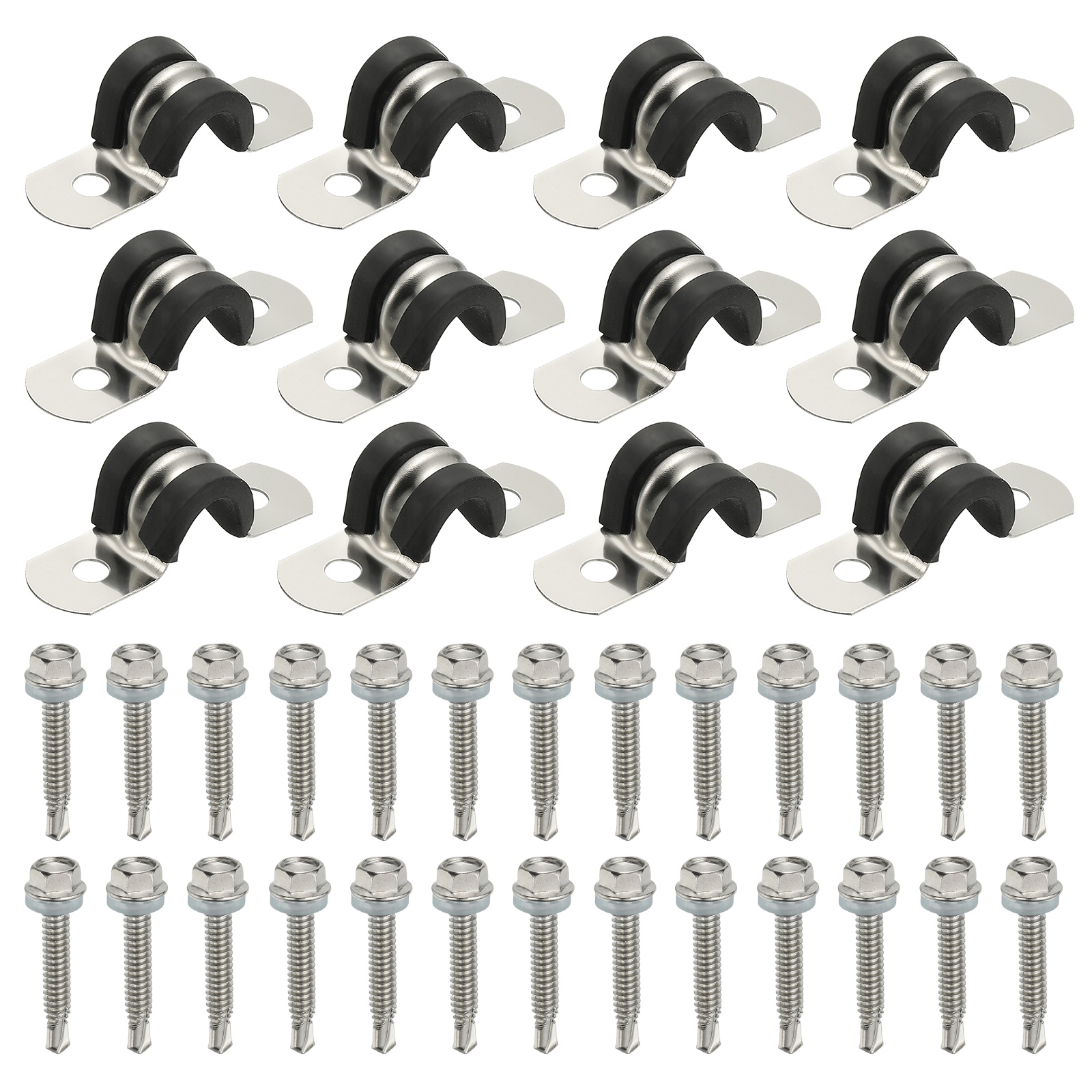 素材:304ステンレススチール、ラバー;内径:8mm / 5/16インチ;ねじ穴径:6mm / 1/4インチ;厚さ:0.6mm;幅:12mm / 1/2インチ;パッキングリスト:パイプクランプ12個、M5.5*32自己攻釘六角ネジ26個