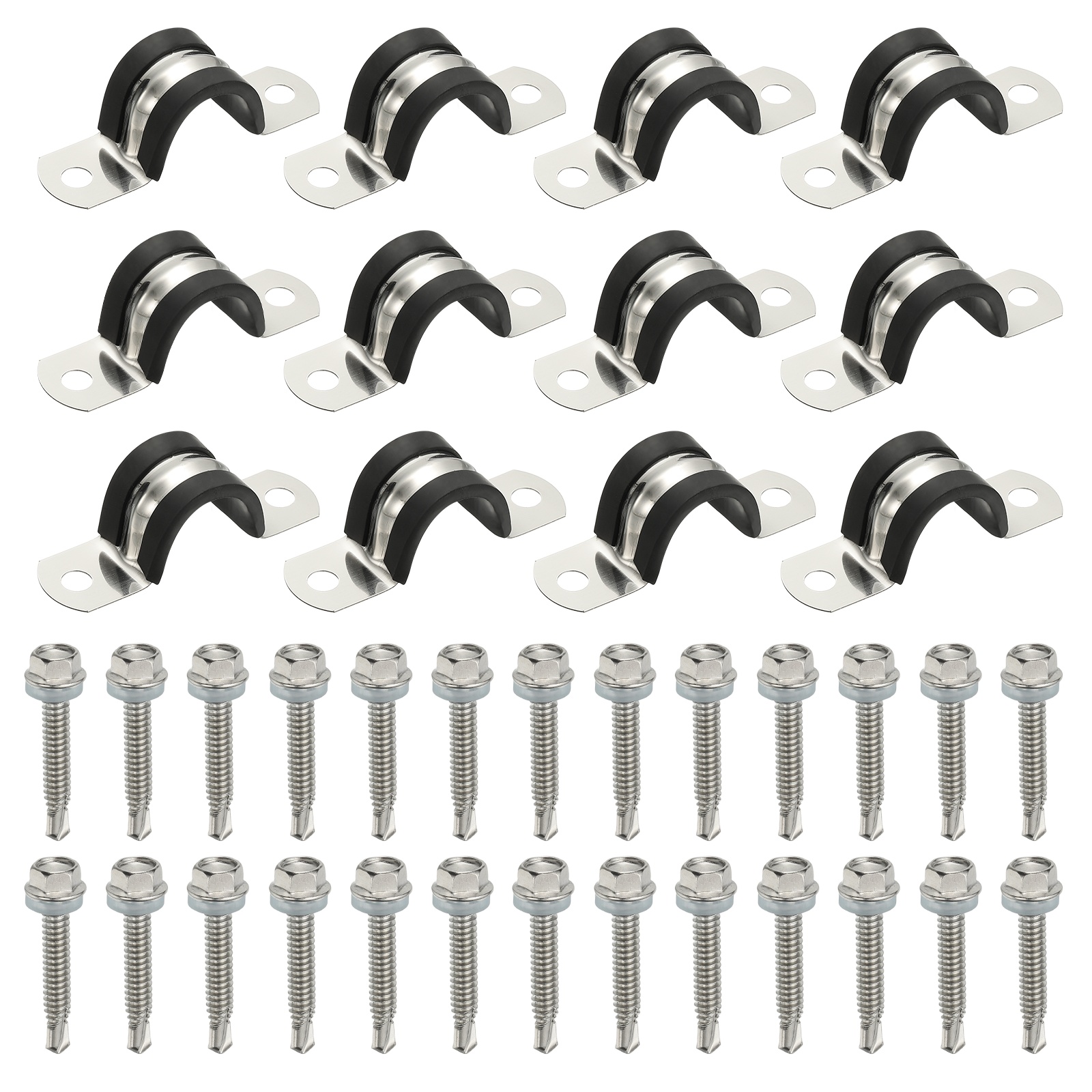 PATIKIL 12個 パイプクランプ 3/4インチ304ステンレススチールラバークッション付きUブ ラケットコンジットクランプパイプストラップワイヤ