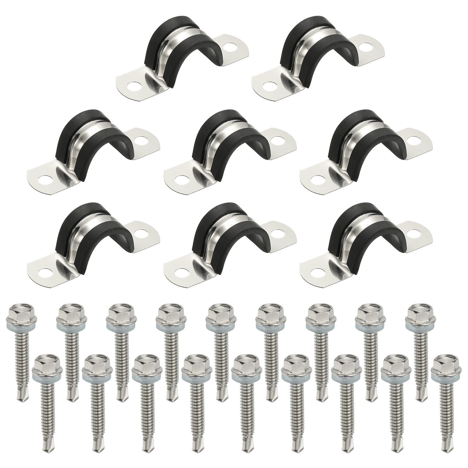 PATIKIL 8個 パイプクランプ 11/16インチ304ステンレススチールラバークッション付きUブ ラケットコンジットクランプパイプストラップワイ