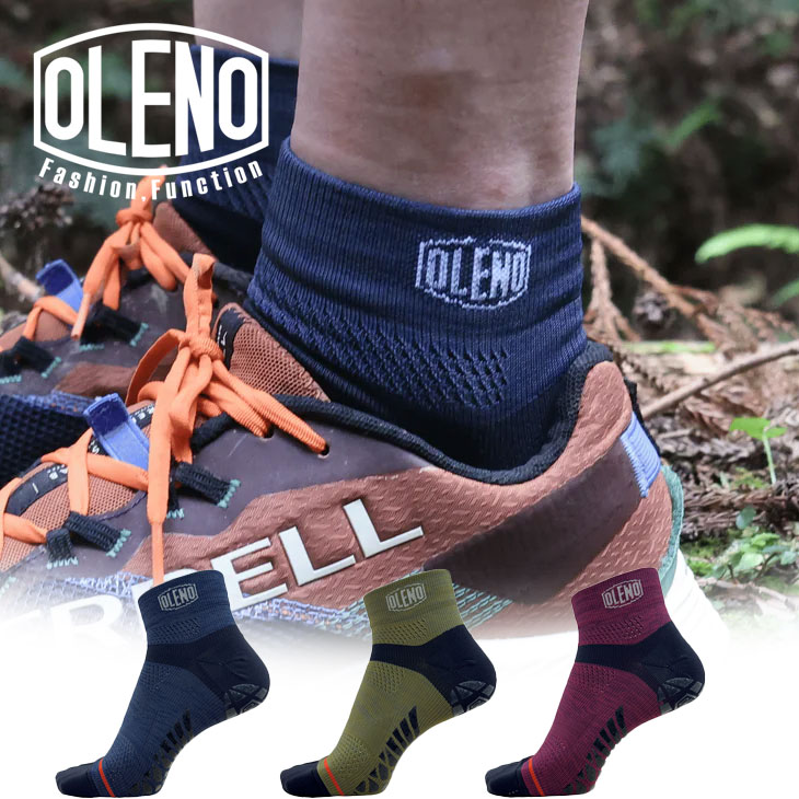 足裏に使用しているのは、OLENOが独自に開発したシリコンラバーの滑り止め。傾斜45度の斜面でも滑らない他を圧倒するグリップ力を実現しており、山の下りや坂道などのシーンでも足が靴の中で動くことを防ぎます。