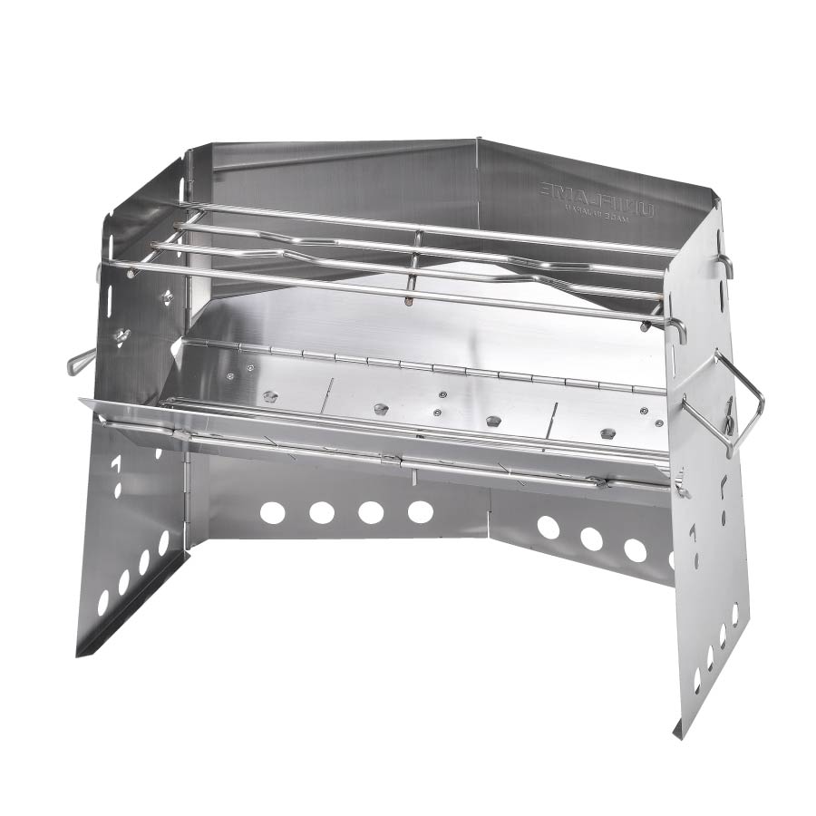 地面と炭床まで13cmの高さがあり、芝等へのダメージを軽減。