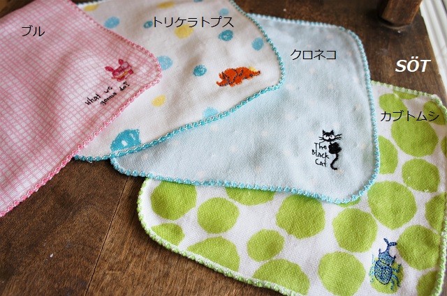 ハンカチの16×16cmサイズは、小さなお子様のポケットにもすっぽり収まるミニサイズ。