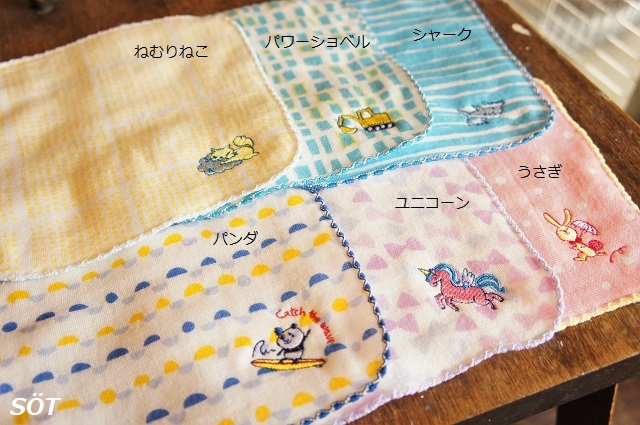 ハンカチの16×16cmサイズは、小さなお子様のポケットにもすっぽり収まるミニサイズ。