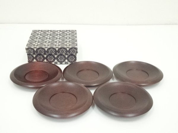 ys6984991; 宗sou 天然木製茶托5客(箱付)【道】