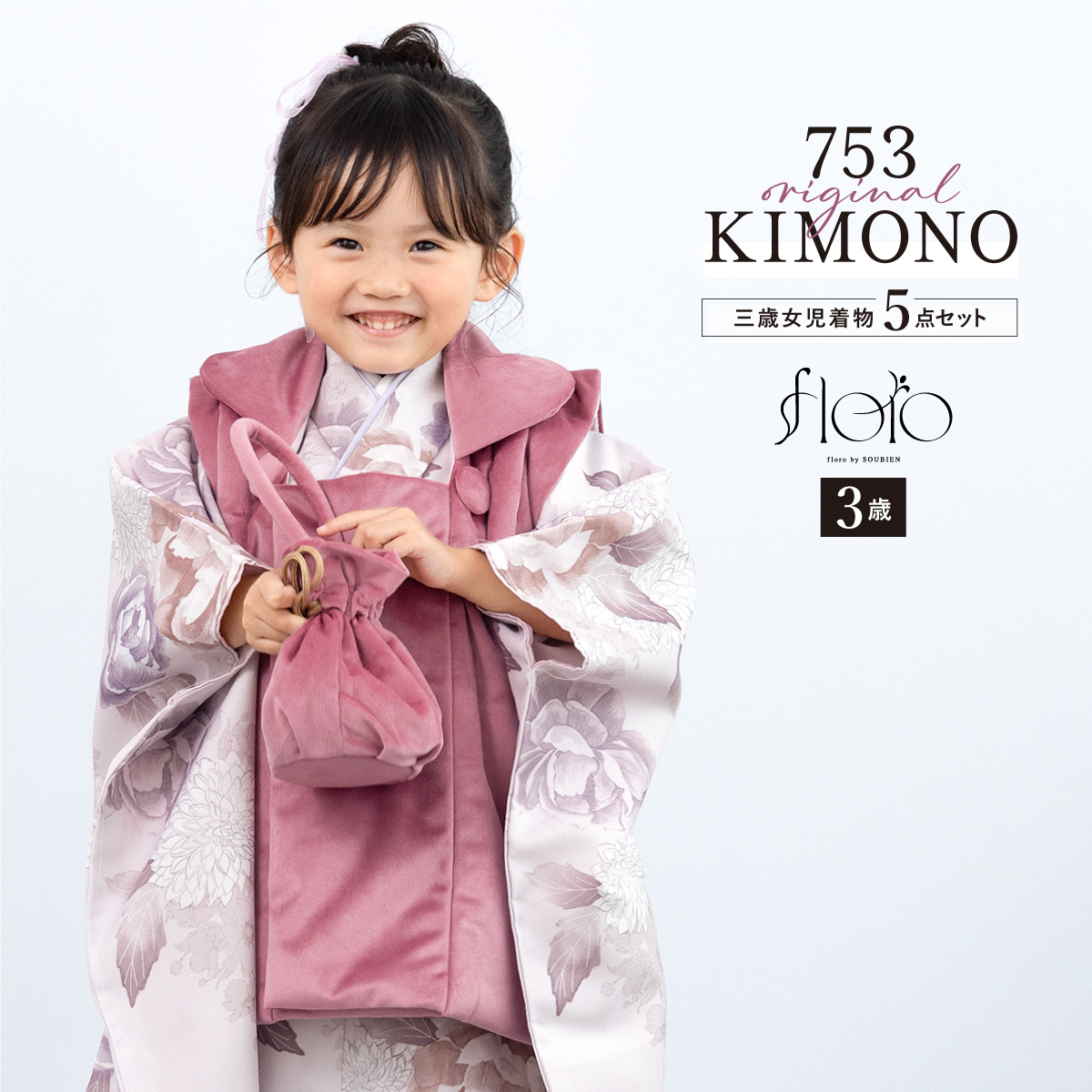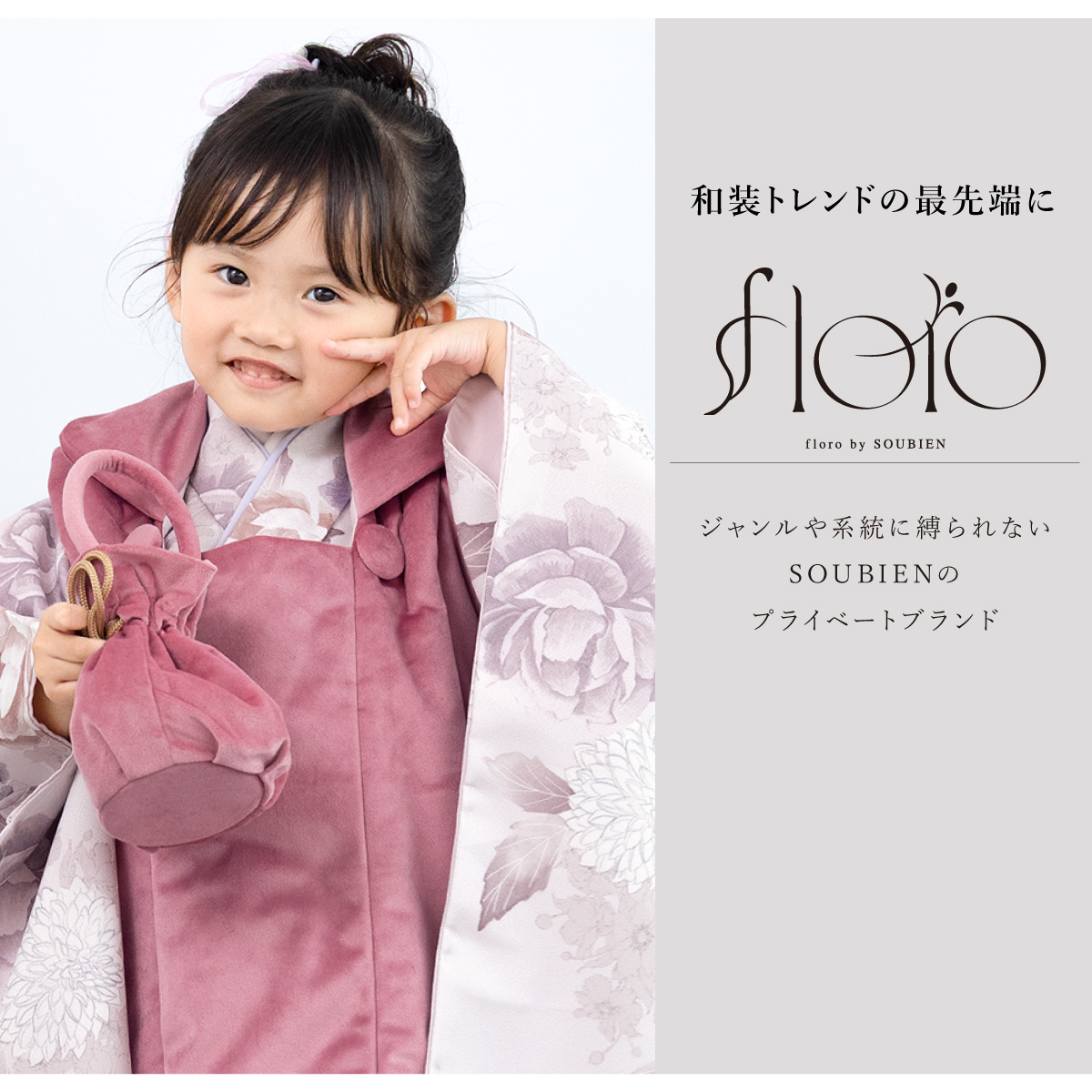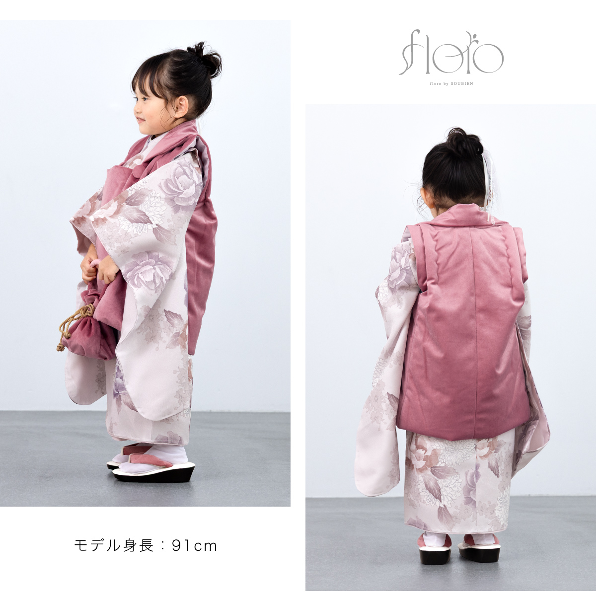 七五三 着物 3歳 レトロ 被布 販売 女の子 三歳 着物セット 被布コート 襦袢 草履 セット floro ピンク 花柄 和装 女児 子供 創美苑