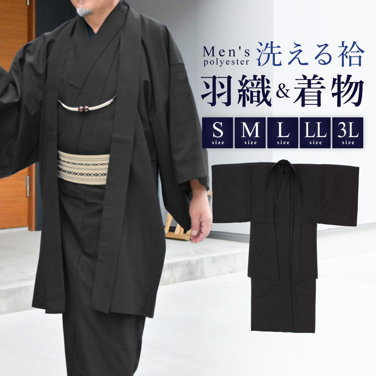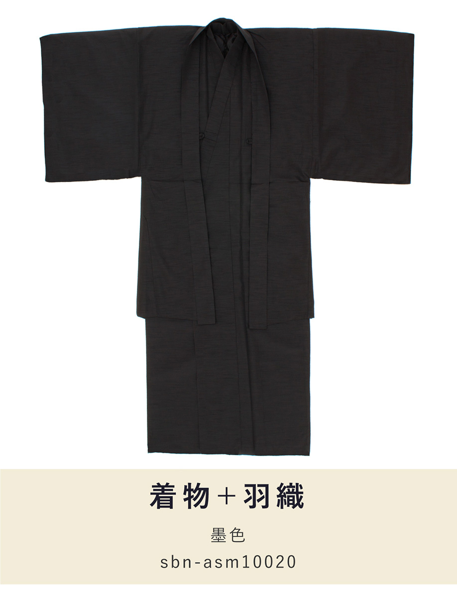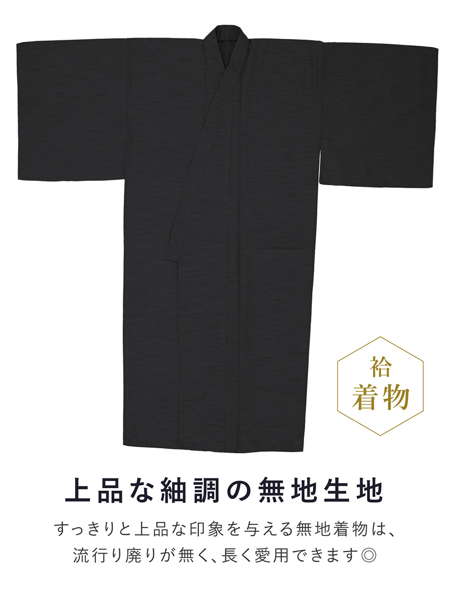着物 羽織 メンズ セット アンサンブル 袷 カジュアル 無地 紬調 墨色 黒 ブラック シンプル S M L LL 3L 男性 仕立て上がり 送料無料