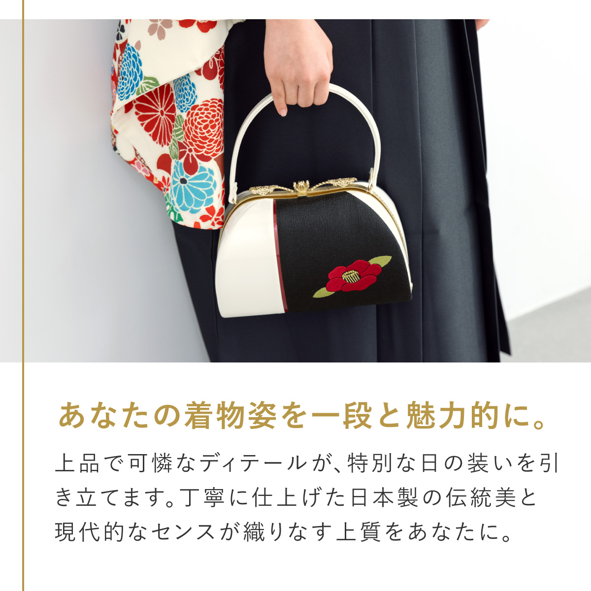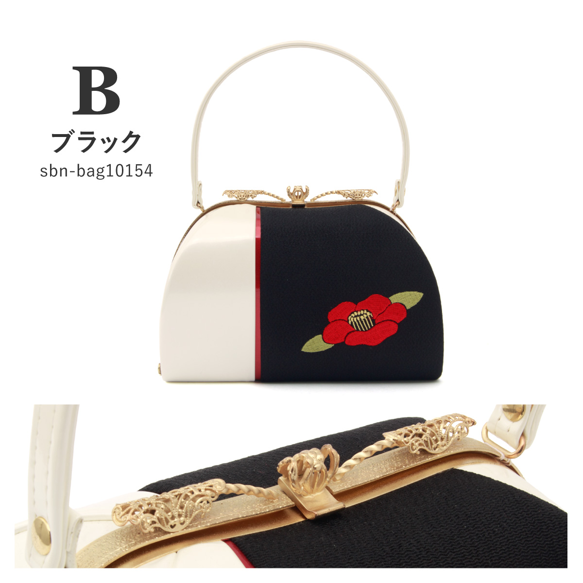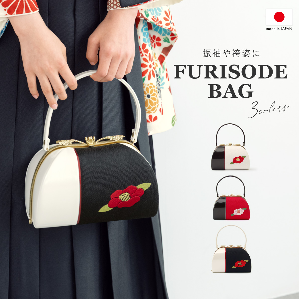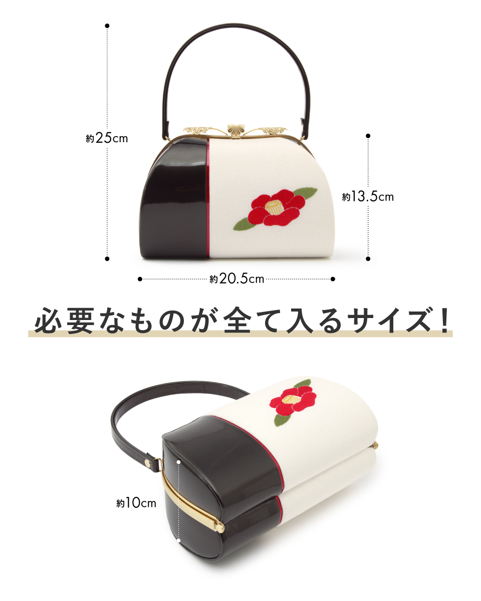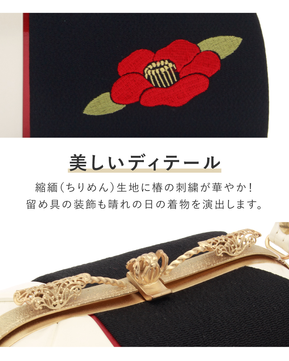 卒業式 バッグ 袴 成人式 振袖 レトロモダン 赤 白 黒 椿 花 刺繍 縮緬 ちりめん 日本製 フォーマル ハンドバッグ 和装バッグ 創美苑 送料無料