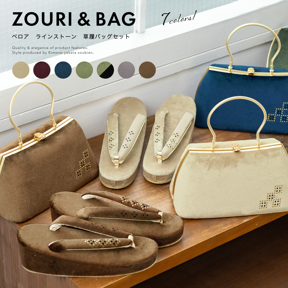 草履バッグセット 袴姿 卒業式 振袖 成人式 厚底 ベロア ラインストーン スタッズ レディース 和装バッグ 和装履物 草履バッグ フリーサイズ 日本製