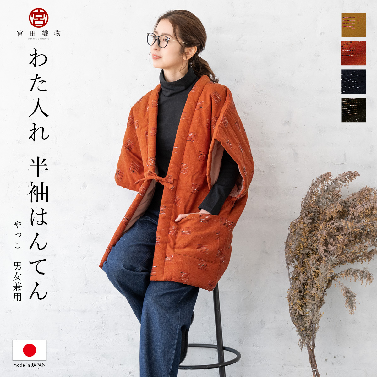 冬におすすめな「宮田織物」の手づくり動きやすい半袖半纏(はんてん)